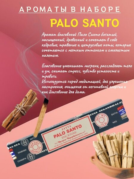 | Дополнительная информация | Набор благовоний, 4 упаковки по 15 гр. |