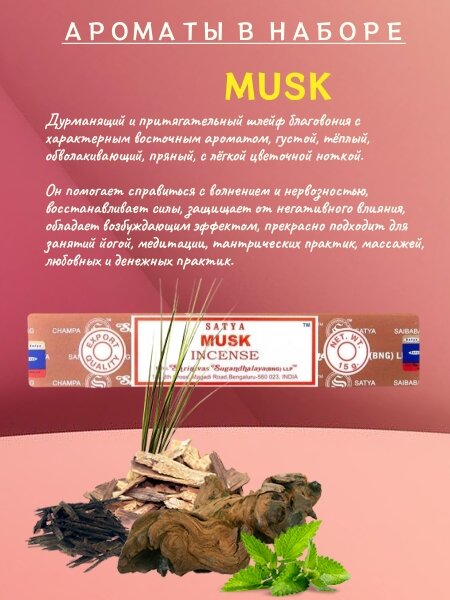 Ароматические палочки / набор 7 упаковок / Satya / арома благовония индийские интересное: