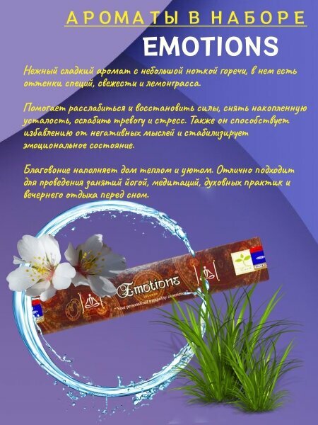 | Дополнительная информация | Набор благовоний, 4 упаковки по 15 гр. |