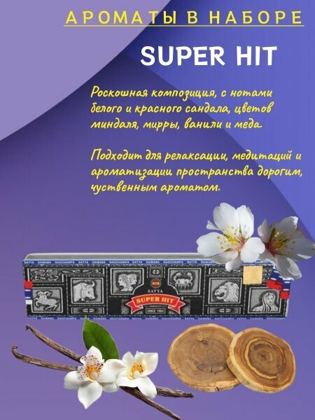 Ароматические палочки / топ набор 7 упаковок / Satya / арома благовония индийские интересное: