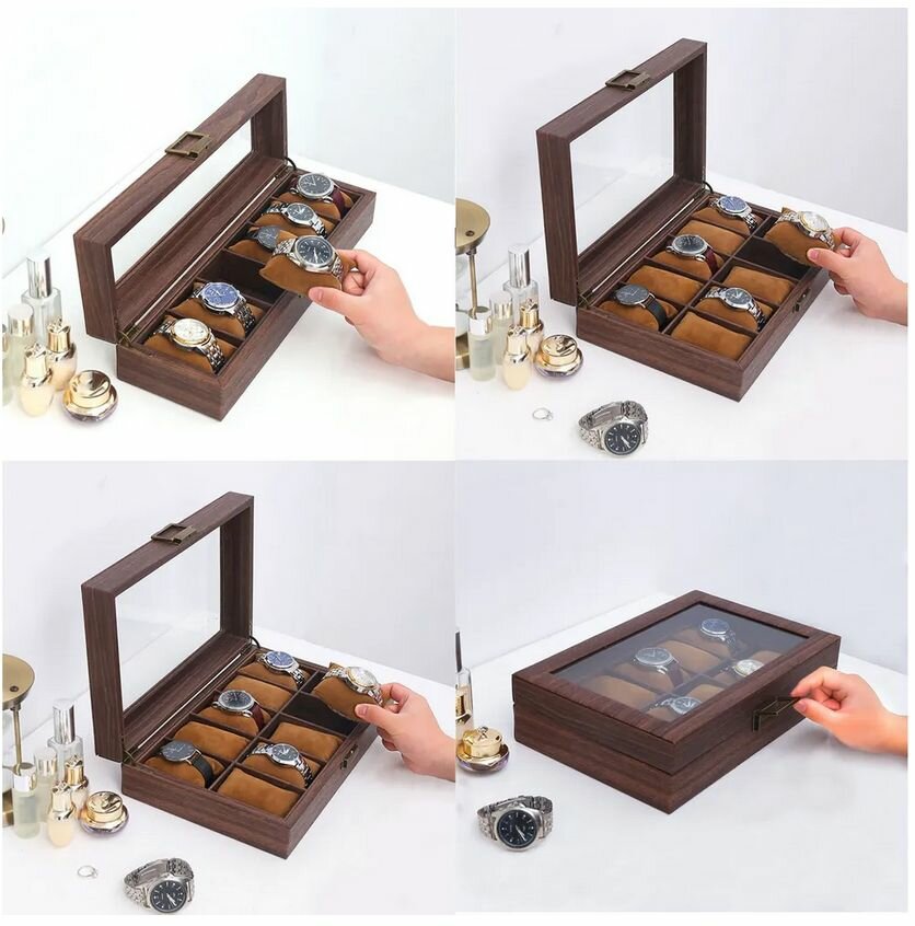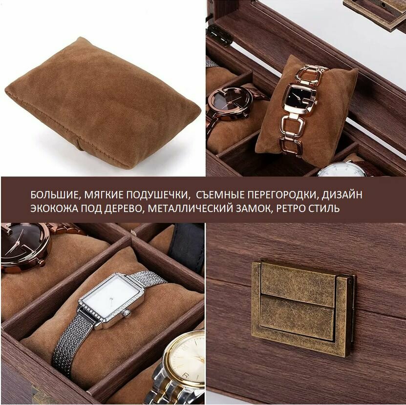 Шкатулка для часов на 12 шт, отделка под дерево интересное: