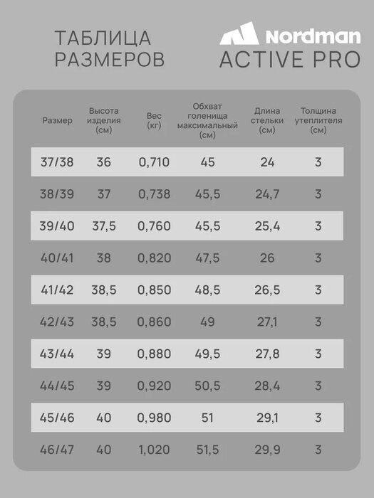 Сапоги Nordman Active Pro до -30 ºС с меховым вкладышем черные, Размер: 43/44
