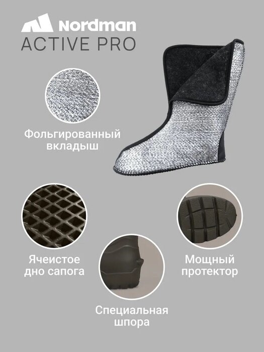 Сапоги Nordman Active Pro до -30 ºС с меховым вкладышем черные, Размер: 45/46