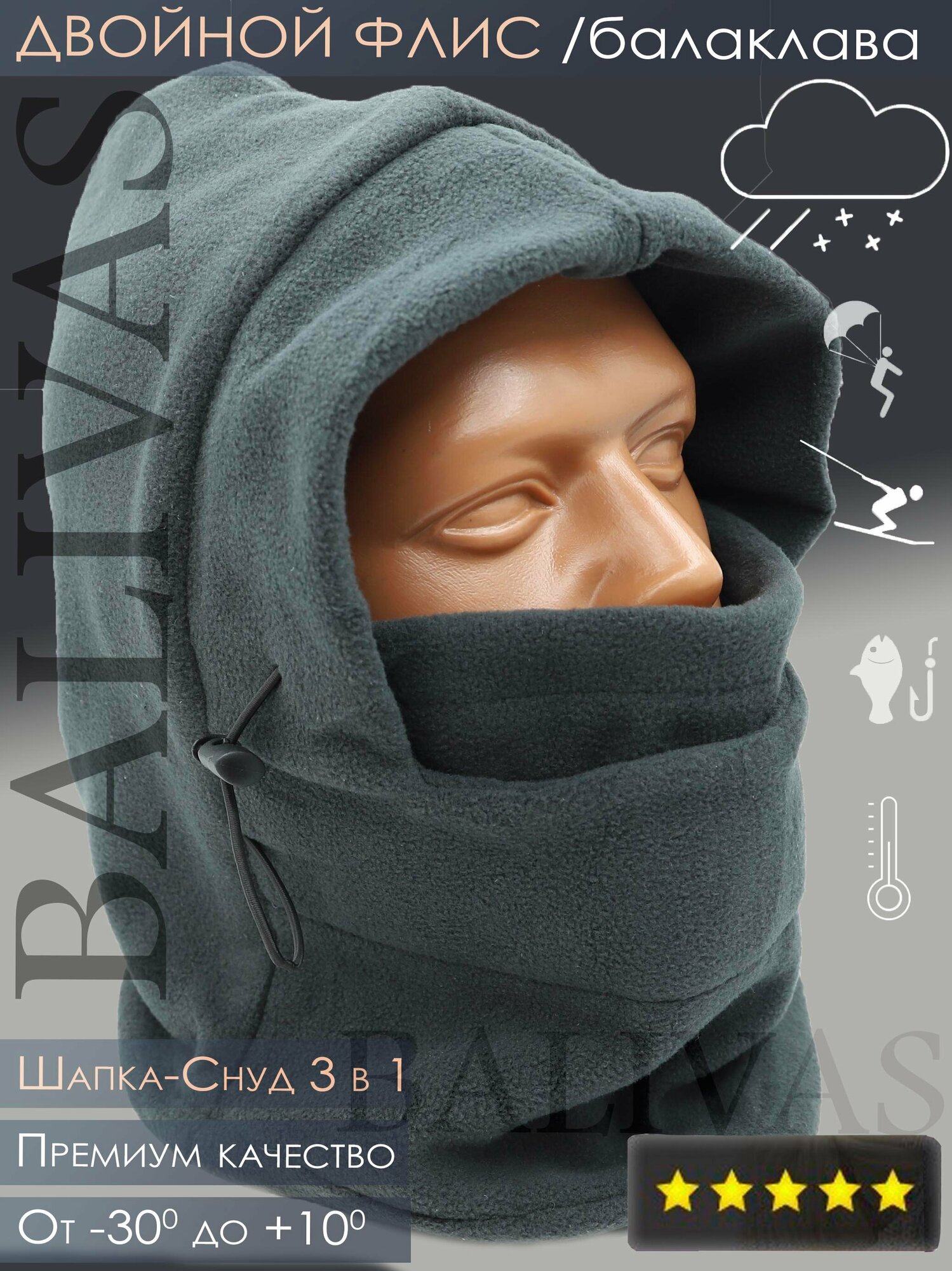 Балаклава BALIVAS с мехом темно-серый интересное: