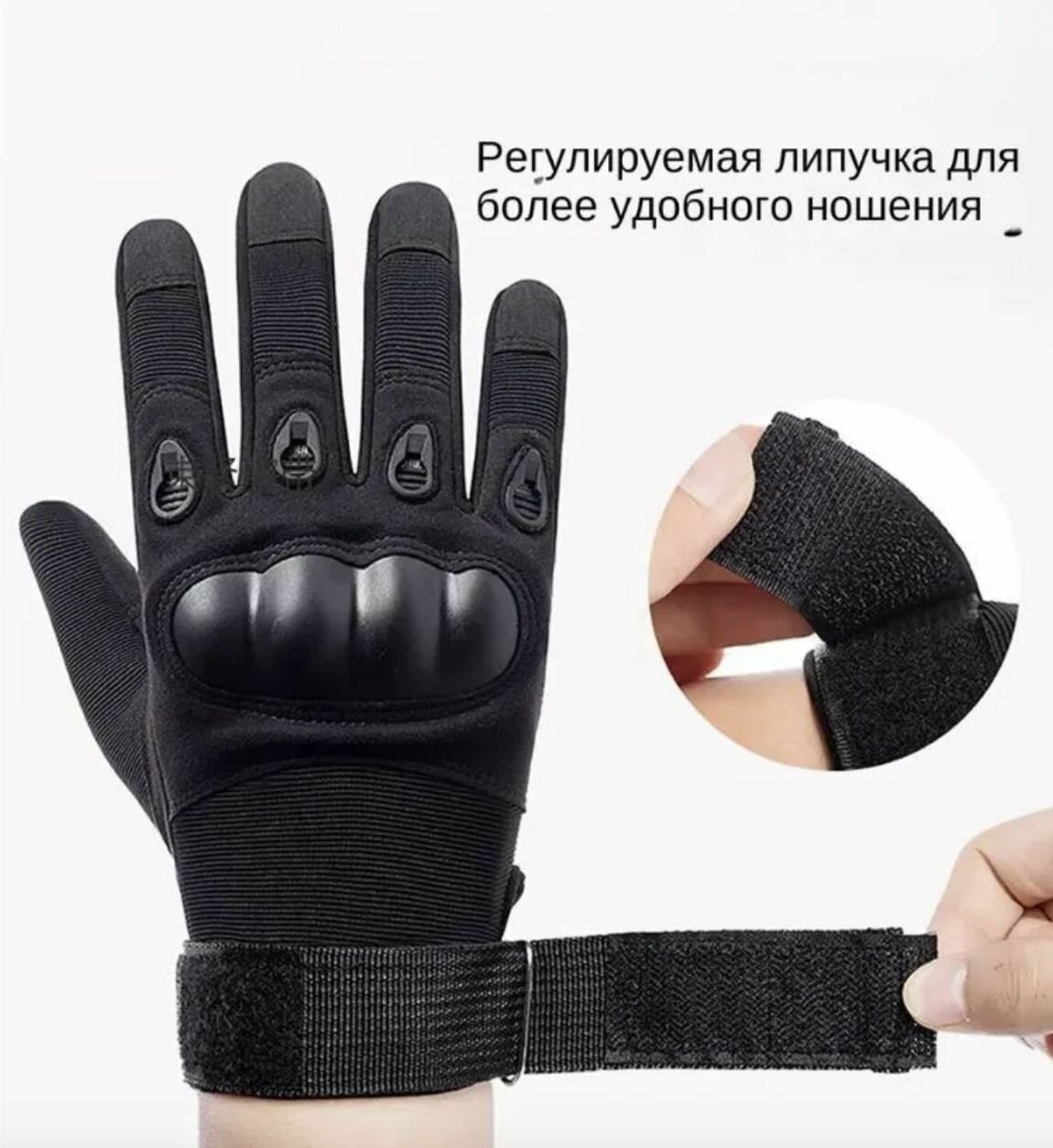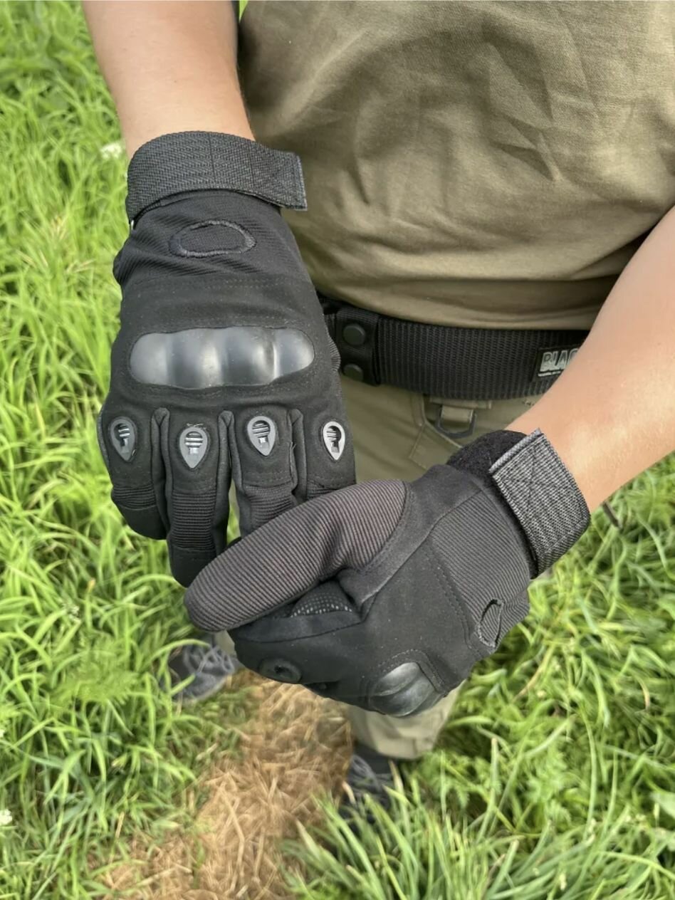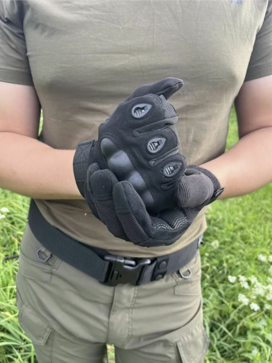 Тактические перчатки для мужчин полнопалые T01 / Перчатки с защитой костяшек боевые военные, для рыбалки, охоты и туризма, размер L, чёрный