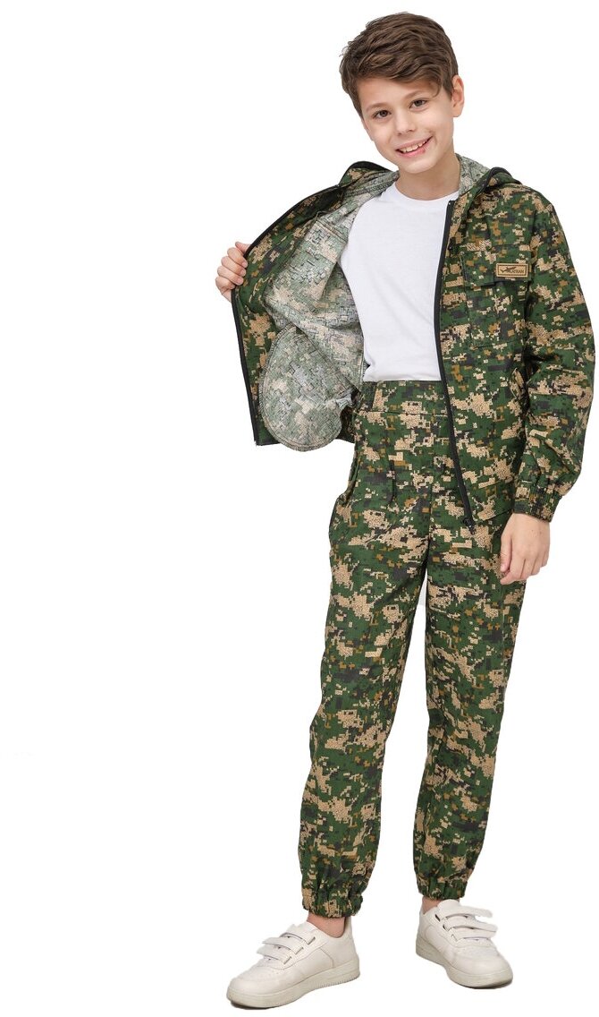 Детский костюм антимоскитный для природы KATRAN ДОН (Хлопок 100%, зеленый пиксель), Размер: 32-34 Рост 134-140
