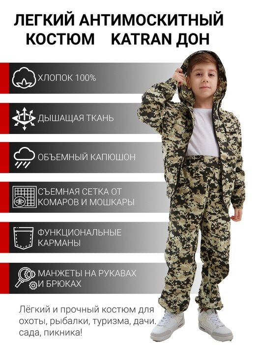 Купить Детский костюм антимоскитный для природы KATRAN ДОН (Хлопок 100%, серая цифра), Размер: 32-34 Рост 134-140