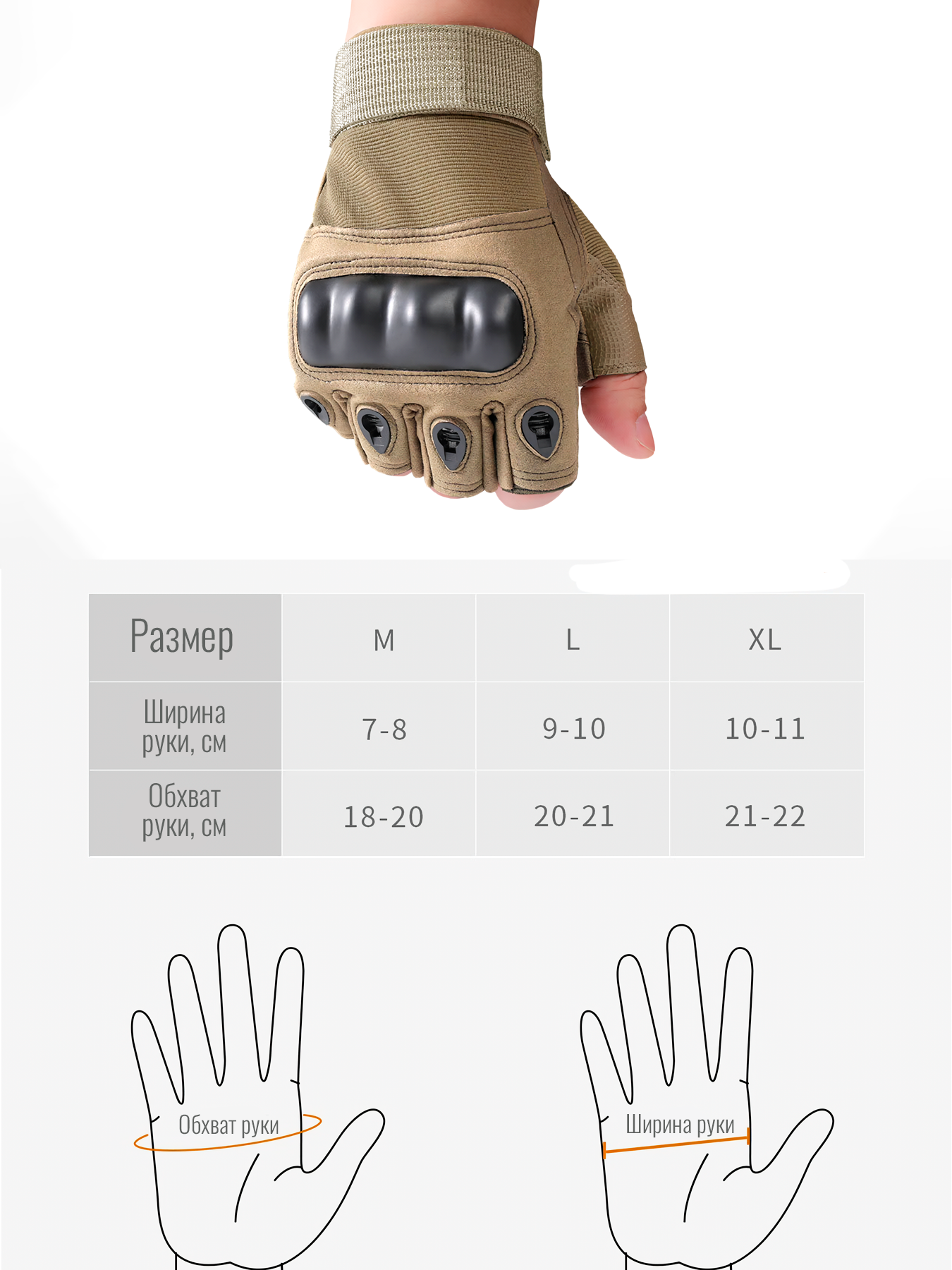 СохранитьТактические треккинговые перчатки Митенки мужские (Бежевый) размер XL интересное:
