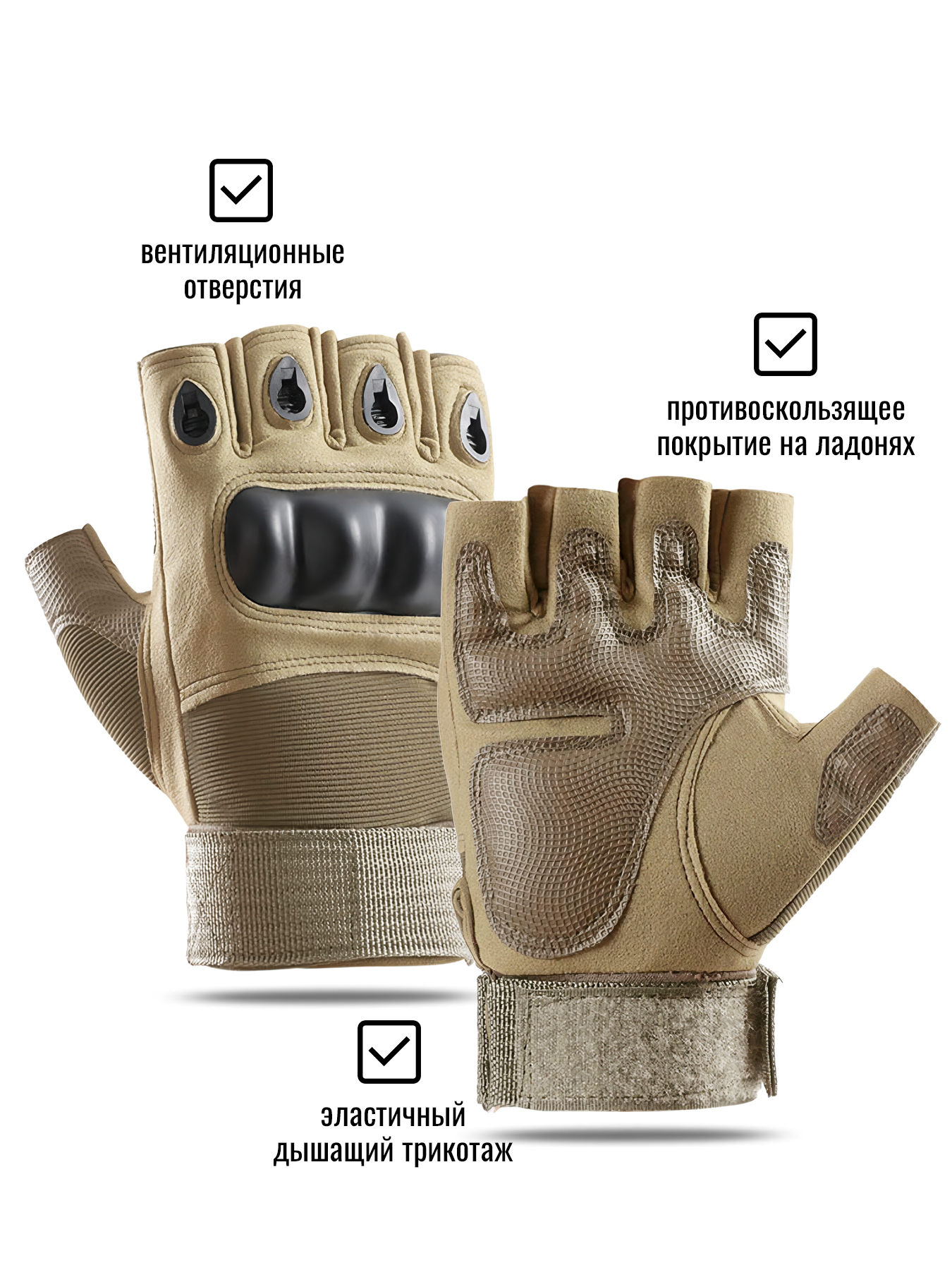 Купить Тактические треккинговые перчатки Митенки мужские (Бежевый) размер XL