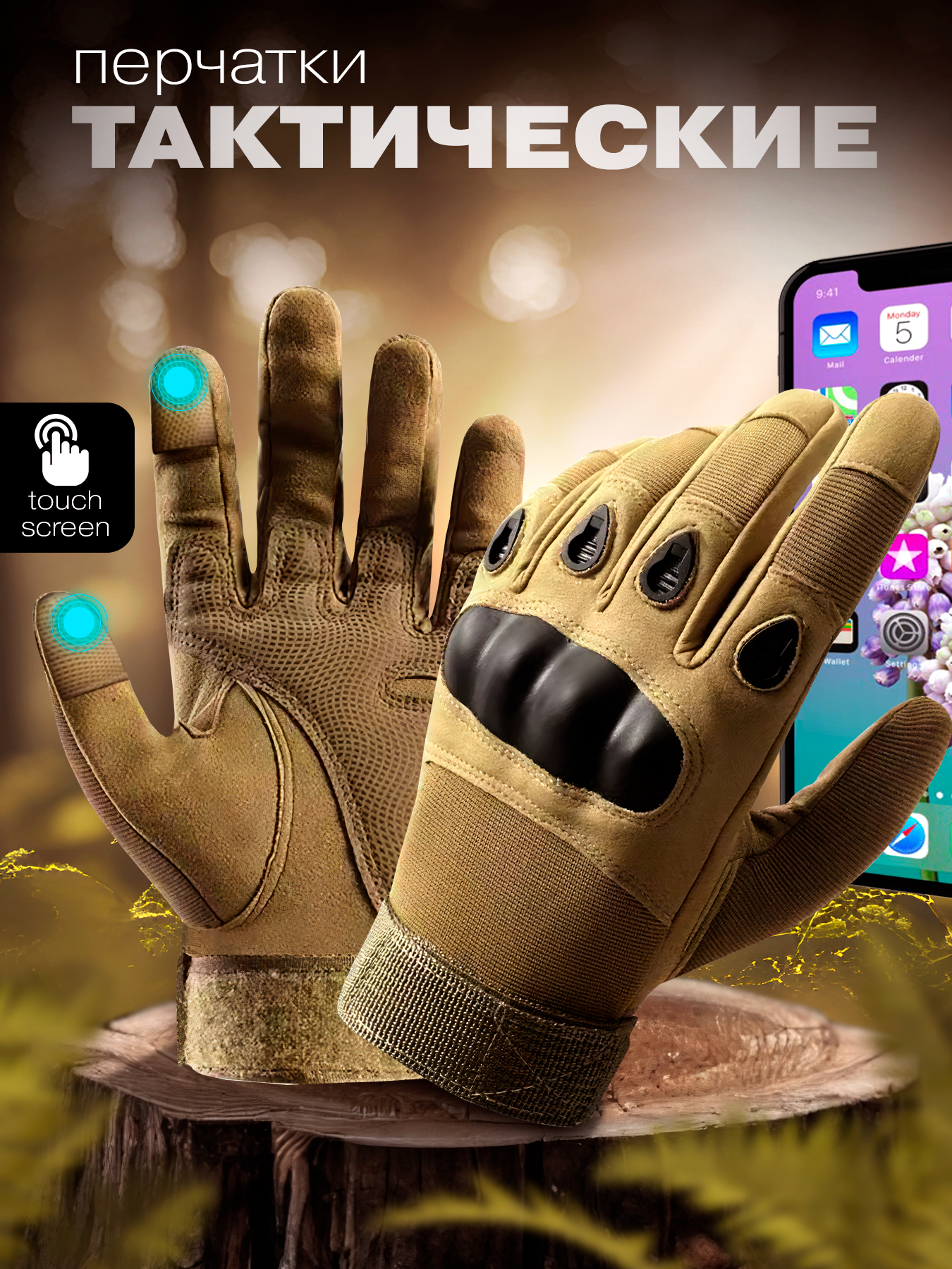 Купить Тактические треккинговые перчатки с Тачскрином мужские (Бежевый) размер XL