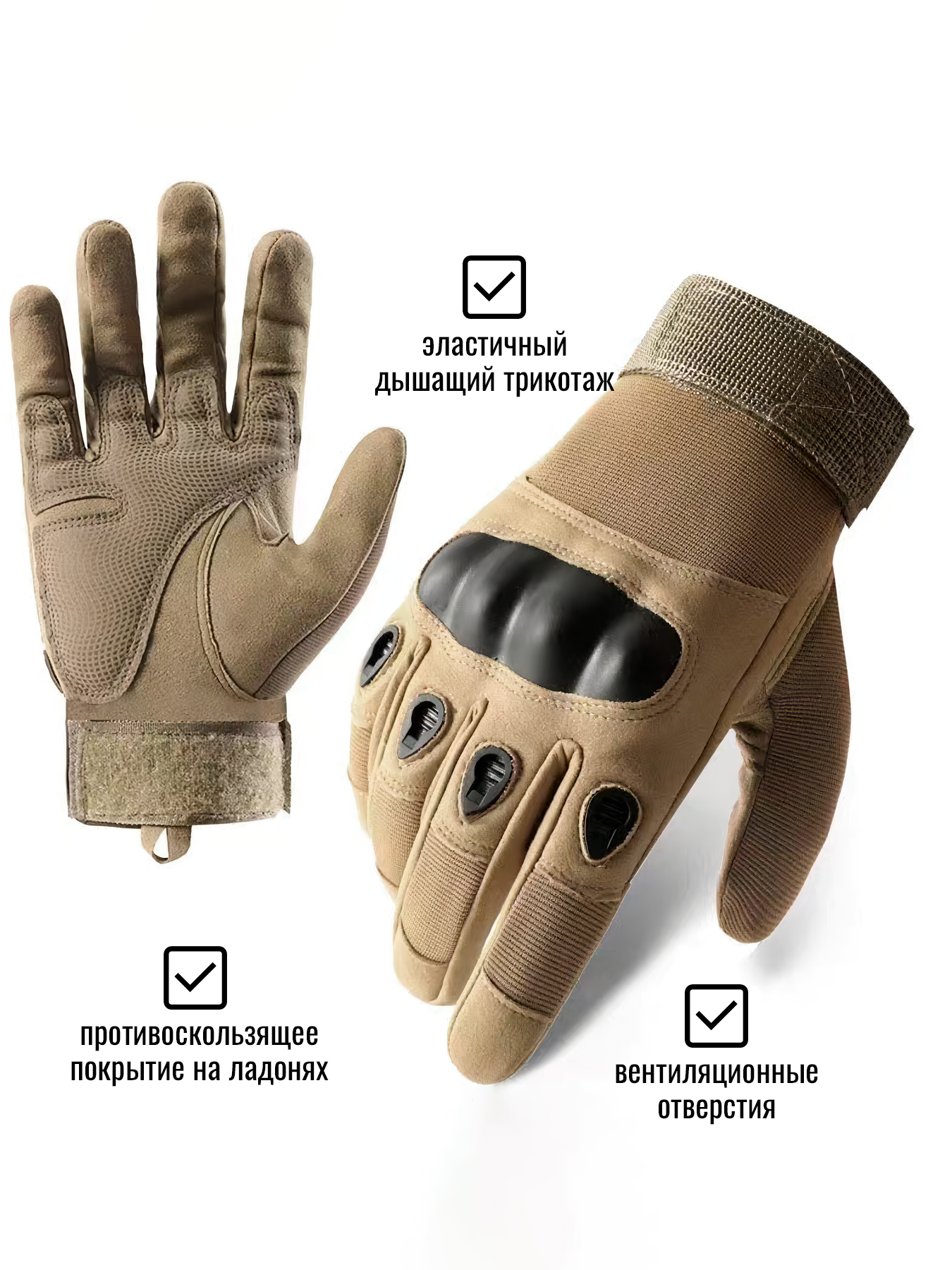 Купить Тактические треккинговые перчатки Без Тачскрина мужские (Бежевый) размер L