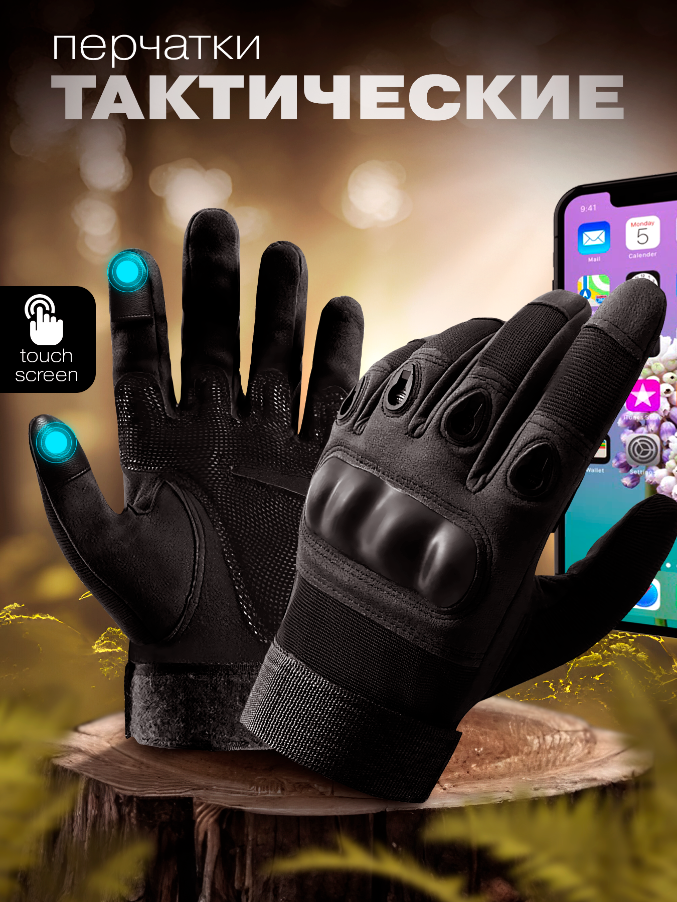 Купить Тактические треккинговые перчатки с Тачскрином мужские (Черный) размер L