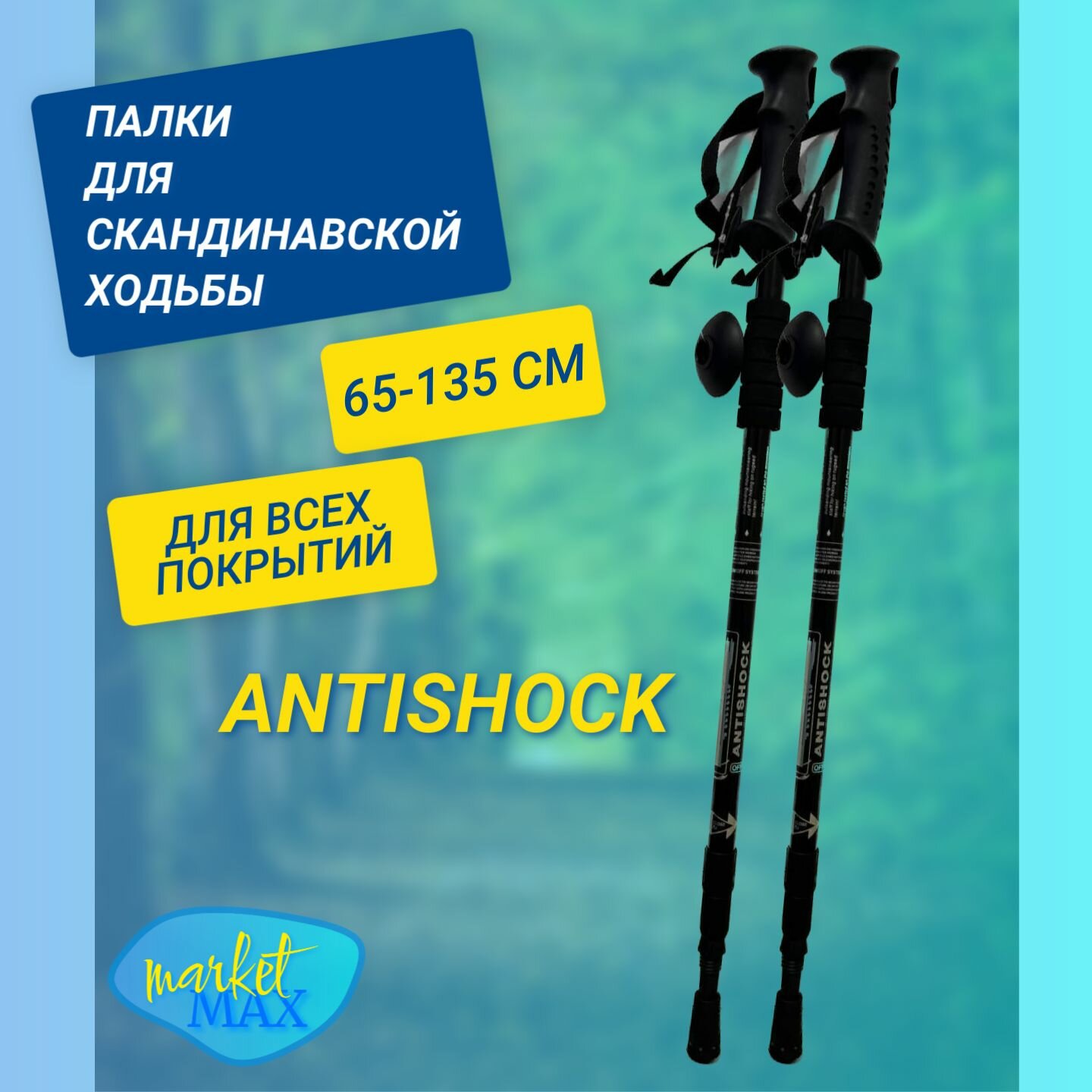 Палки для скандинавской ходьбы MarketMax, алюминий, 3 секции, телескопические, антишок, амортизация, 2 шт