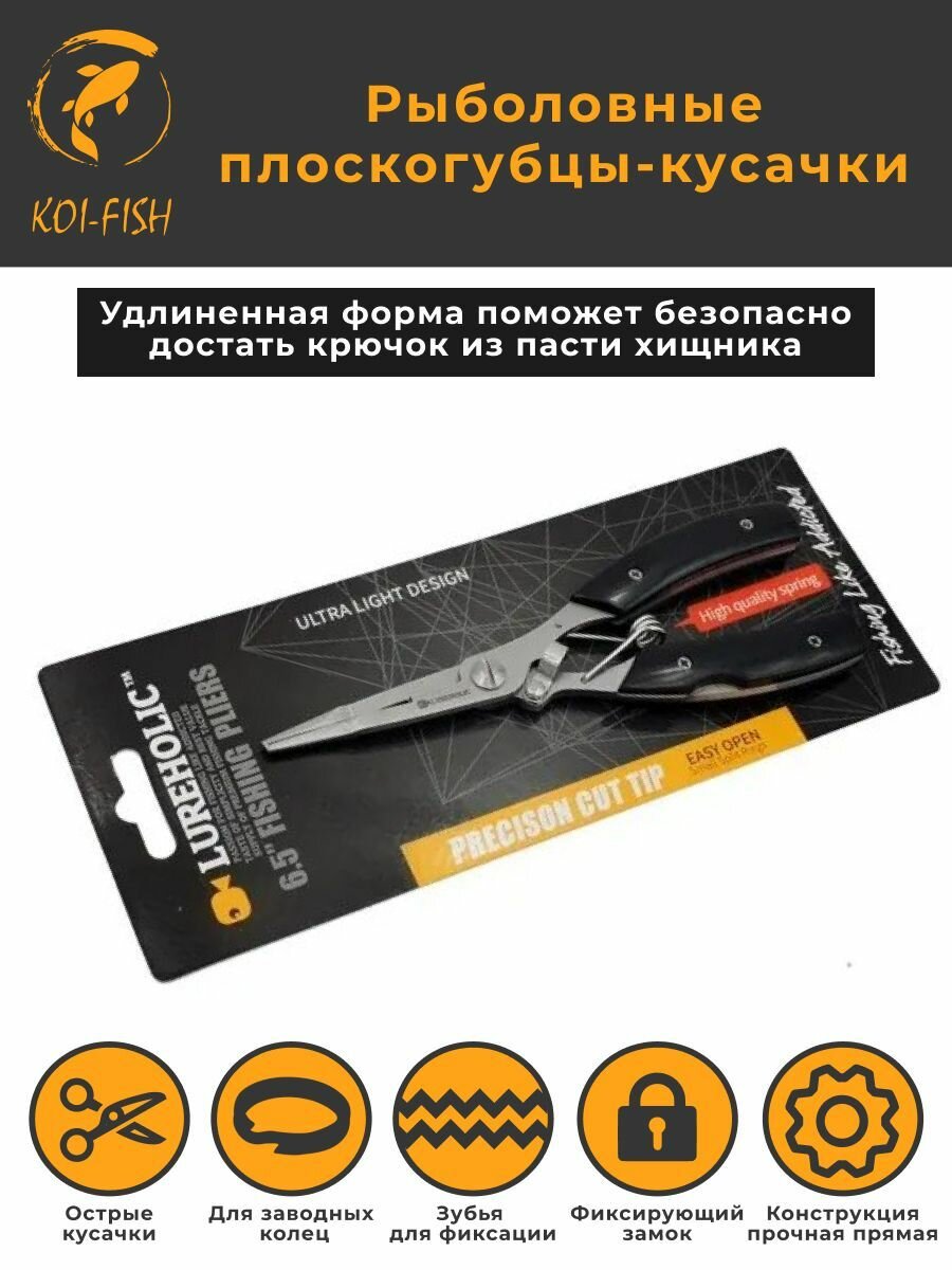 Купить Профессиональные Плоскогубцы рыболовные удлиненные Lureholic 16,5см, чёрные