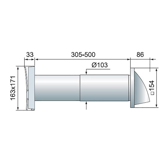 | Дополнительная информация | регулируемая длина воздухопровода; антимоскитная сетка; комплект с наружным колпаком. |