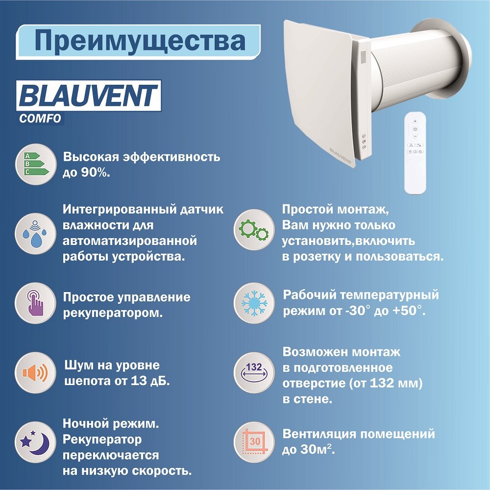 Рекуператор Blauvent COMFO 125 интересное: