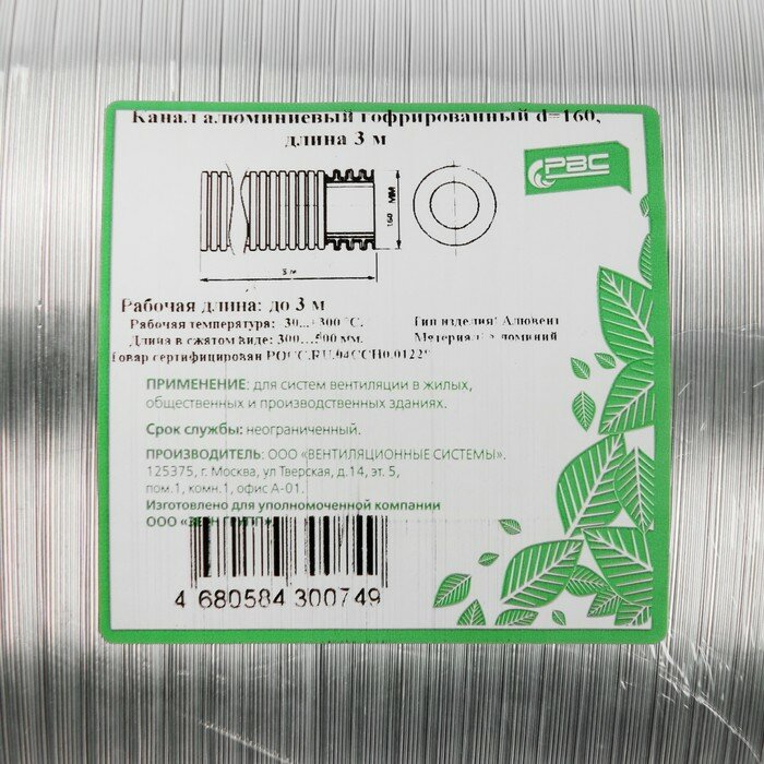 Воздуховод гофрированный "Алювент", d=160 мм, раздвижной до 3 м, алюминиевый интересное: