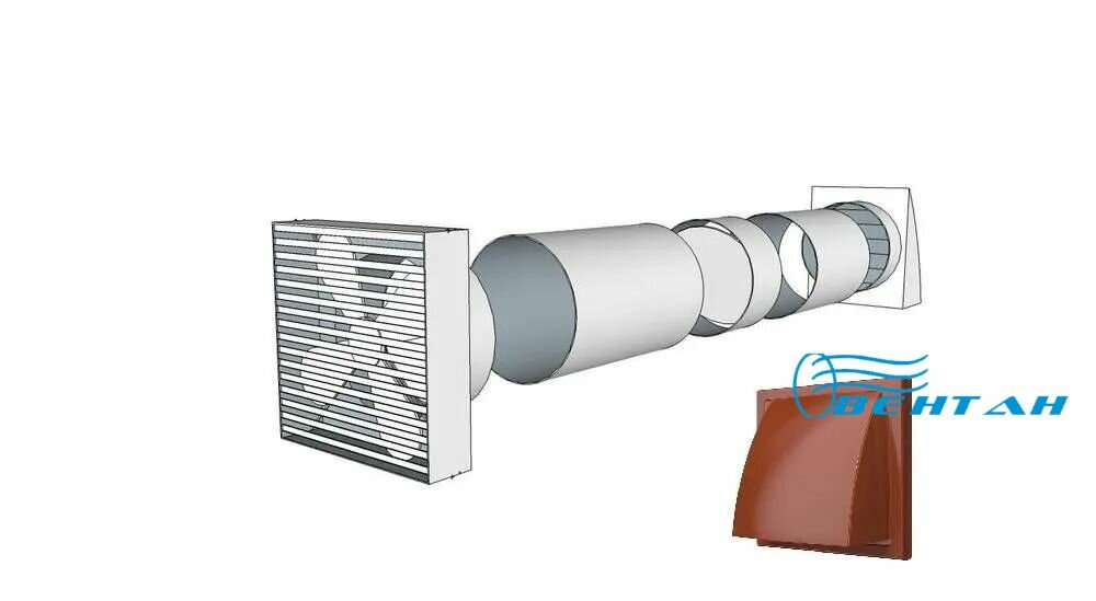 Вентиляция вытяжная диаметром 100 мм через стену до 0,5 метра (комплект) Вентан-100/0,5/СЕР
