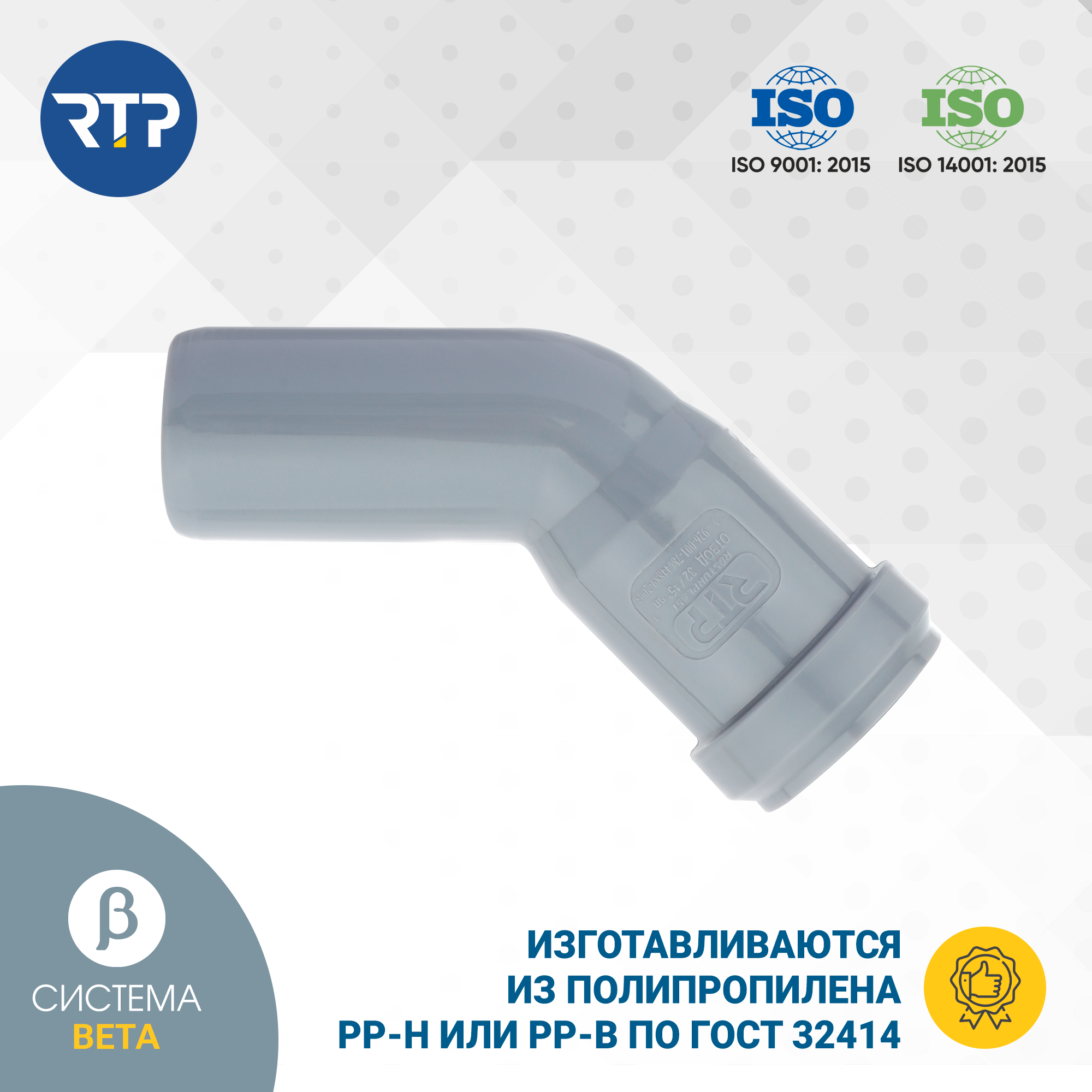 Отвод для внутренней канализации RTP, полипропилен, ППР, PP-R, D32 х 45° интересное: