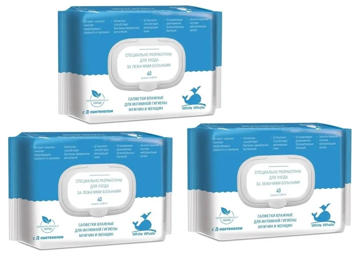 Влажные салфетки для лежачих больных White whale 40 шт. 3 упаковки интересное: