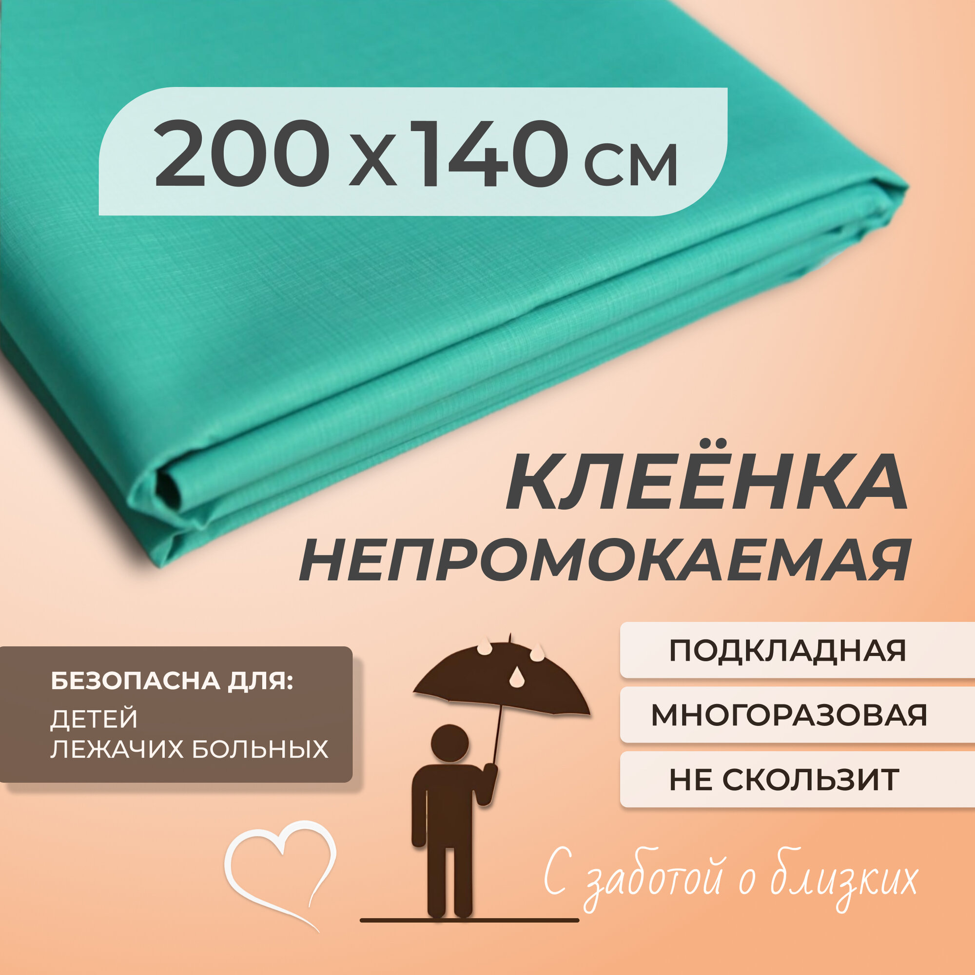 СохранитьПеленка клеенка медицинская подкладная для лежачих больных, резинотканевая 140х200 см, Polikate зеленая интересное: