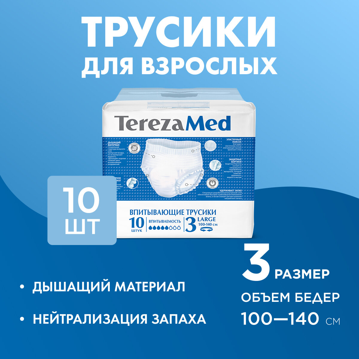 Трусы-подгузники для взрослых впитывающие TerezaMed Large (№3) 10 шт интересное: