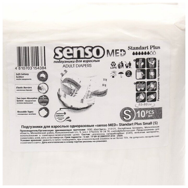 Купить Подгузники для взрослых Senso Med Standard Plus S (55-80 см) 10 шт