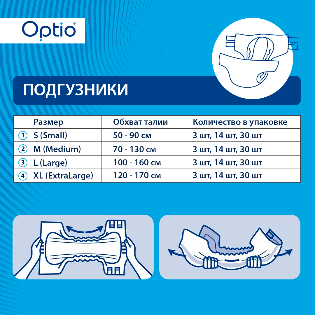 Подгузники для взрослых Optio, размер M (70-130 см), 14 штук