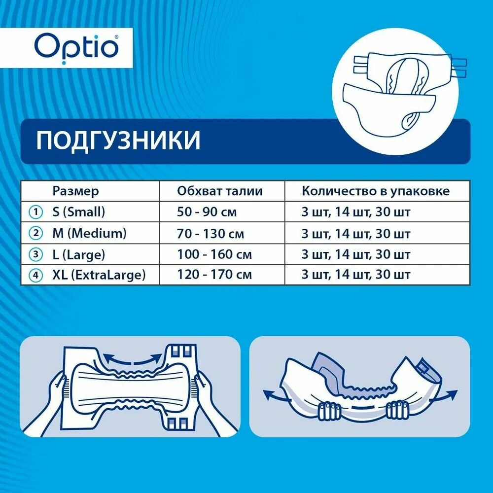 Подгузники для взрослых Optio, размер S (50-90 см), 14 штук