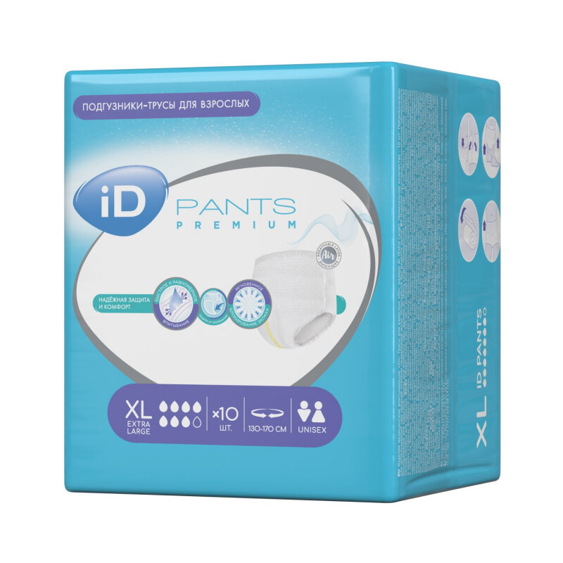 Купить Подгузники-трусики для взрослых iD Pants Premium XL (130-170 см), 10 шт .