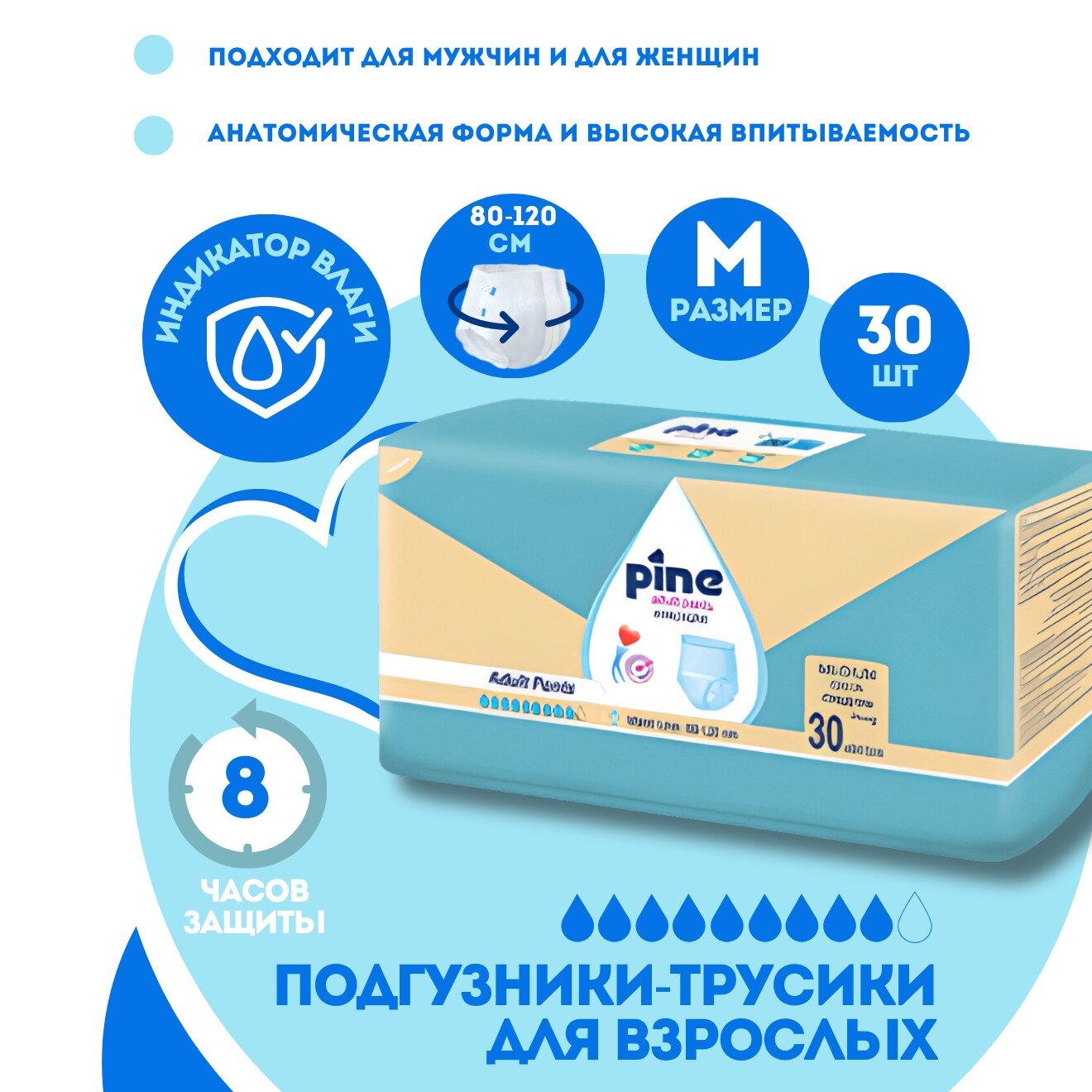 Подгузники трусики для взрослыхPine Adult Pants, M, 80-120 см, 30 шт./уп. интересное: