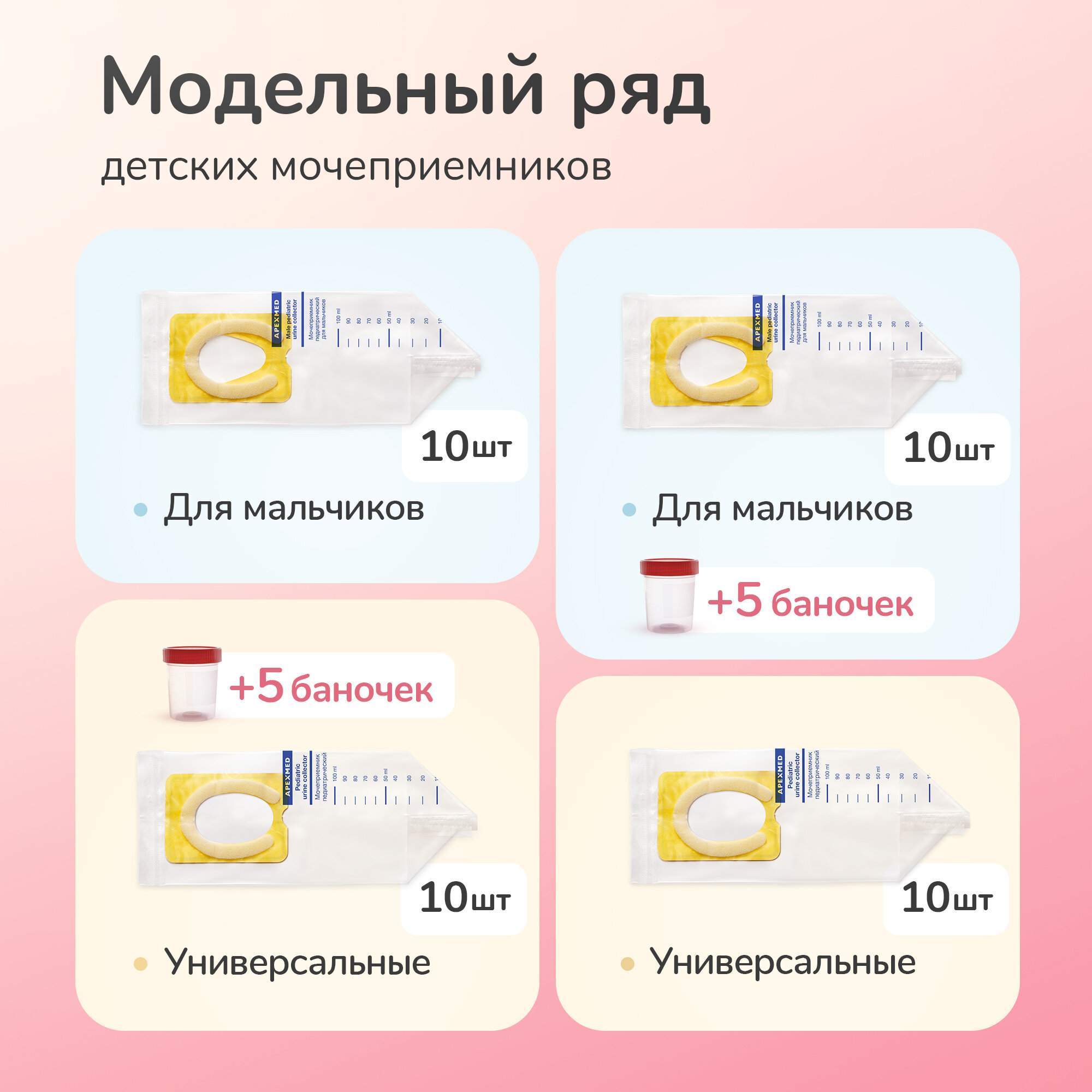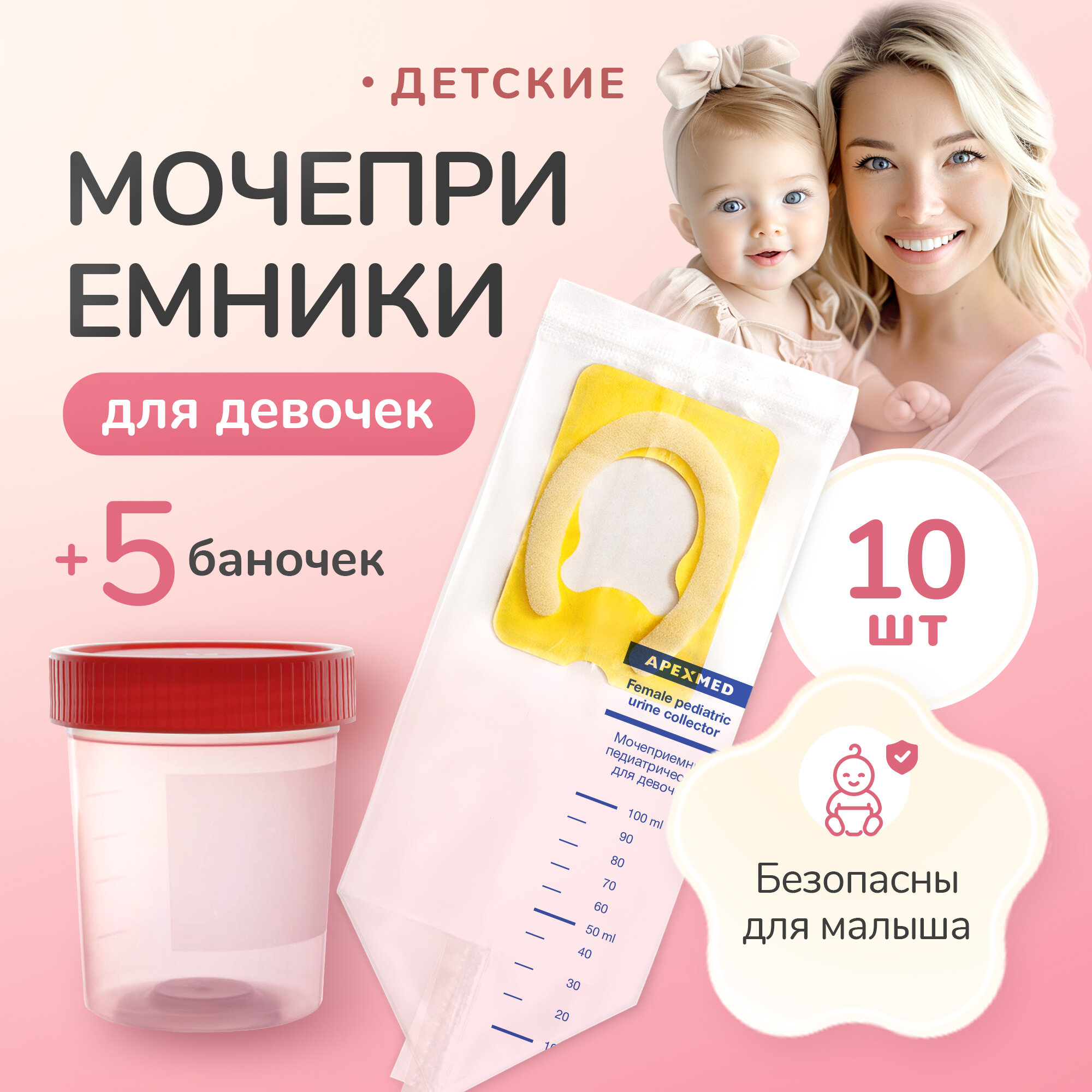 Купить Мочеприемник детский Apexmed для девочек, мочесборник 10 шт, с контейнером для анализов 5 шт