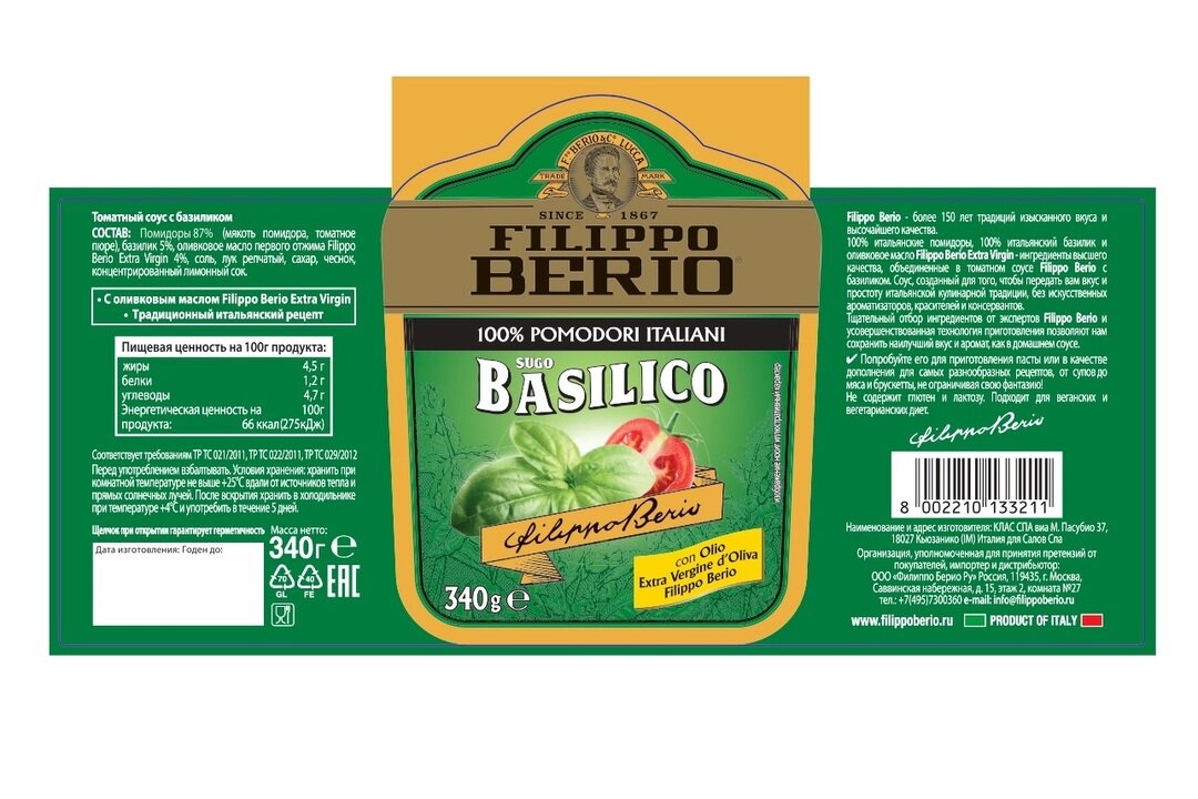 Томатный соус BASILICO, 340 Г, FILIPPO BERIO интересное: