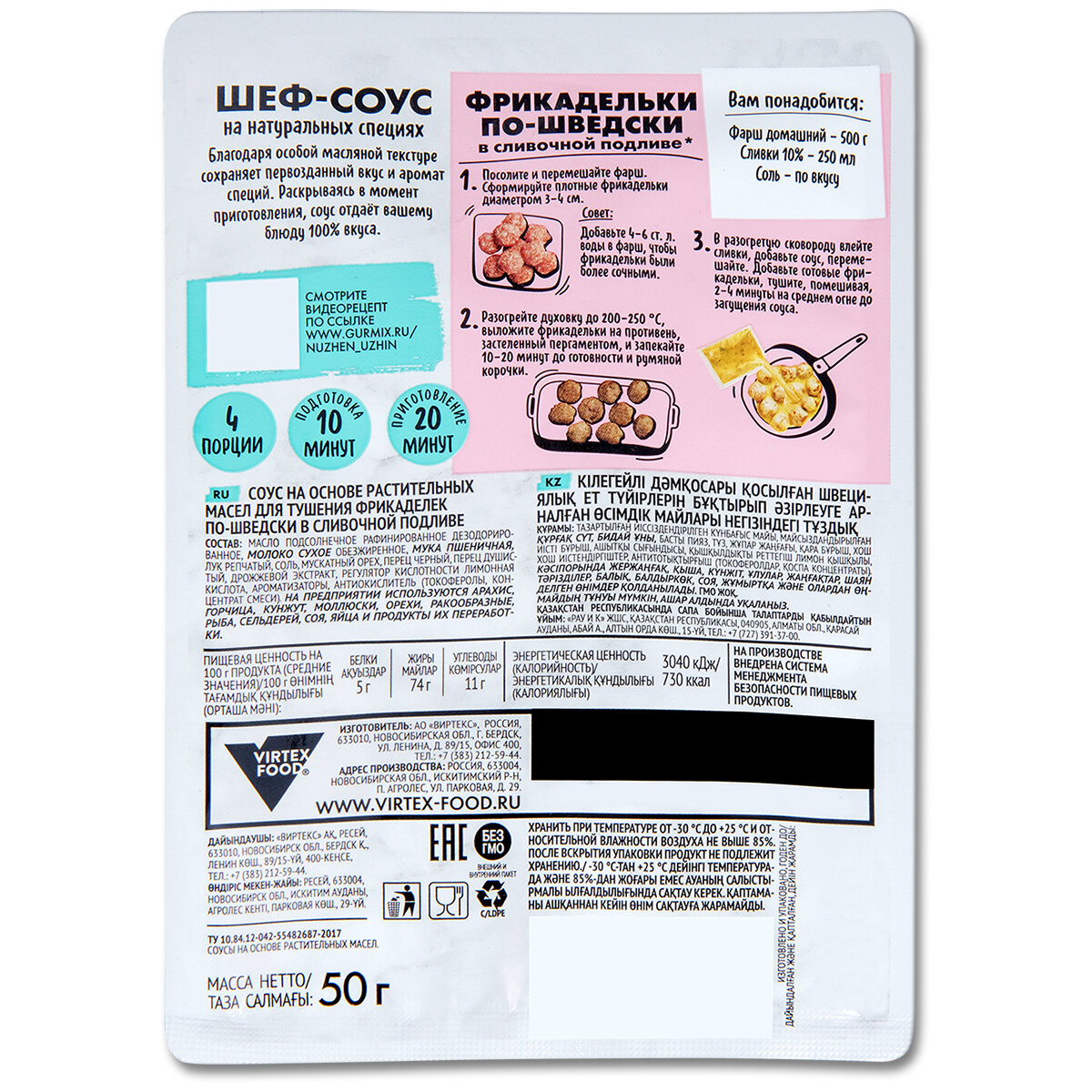Купить Соус Нужен Ужин Гурмикс для фрикаделек по-шведски в сливочной подливе, 50 г, 5 шт.
