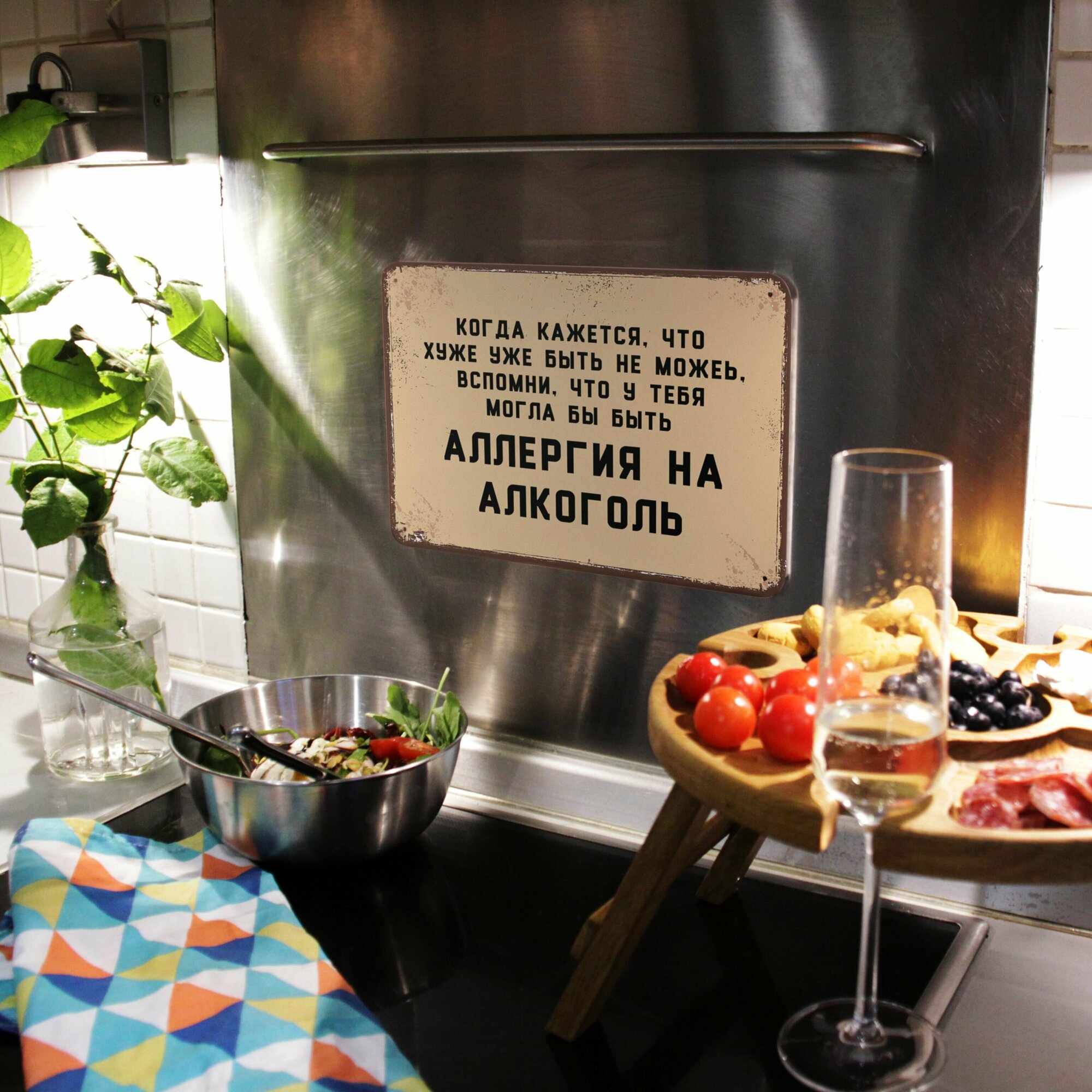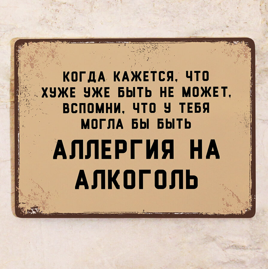Купить Прикольная табличка Аллергия на алкоголь для декора бара и ресторана , прикольный подарок друзьям , металл, 20х30см.