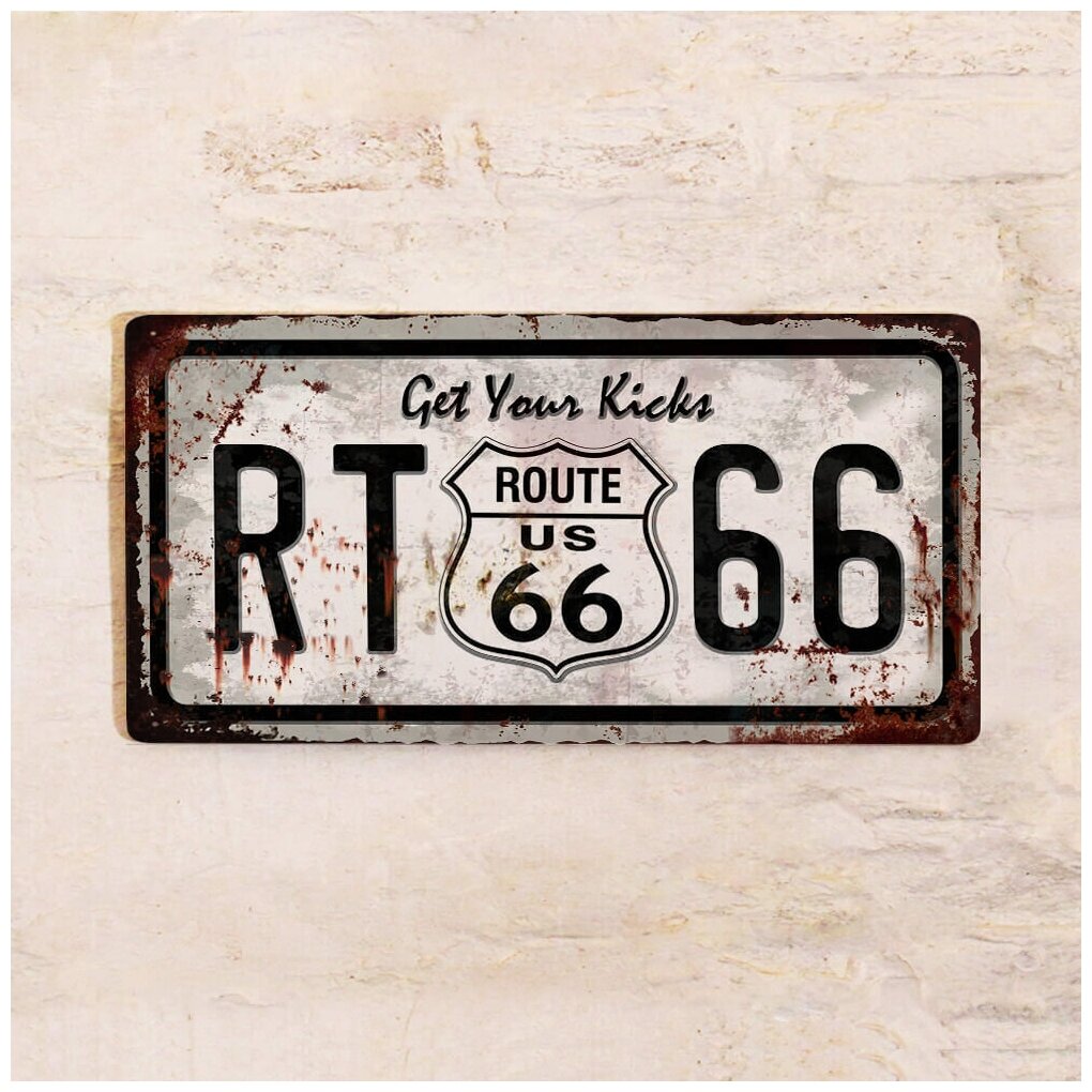 Сувенирный автомобильный номер Route 66, американский автономер, металл, 15х30 см. интересное: