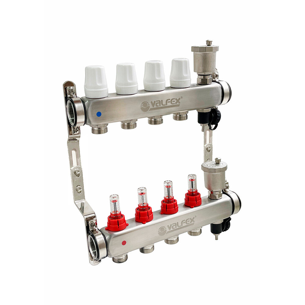 Коллекторный блок из нержавеющей стали 1" с регулирующими и балансировочными клапанами / 5 выходов Valfex арт. VF.582.0605