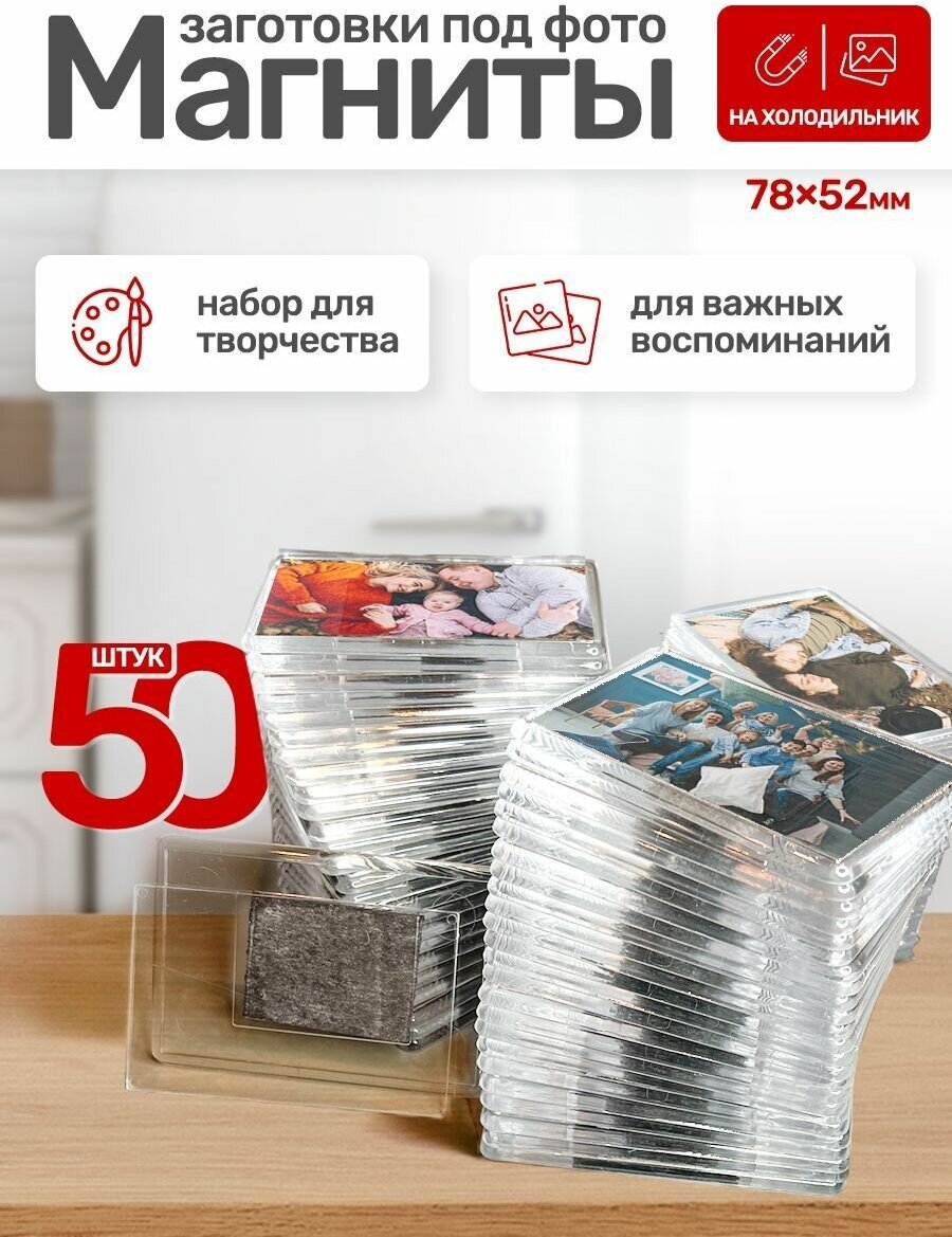 Заготовки для магнитов под фото, магнитные фоторамки, набор для рукоделия и творчества, прозрачные, 78х52 мм, 50 штук интересное: