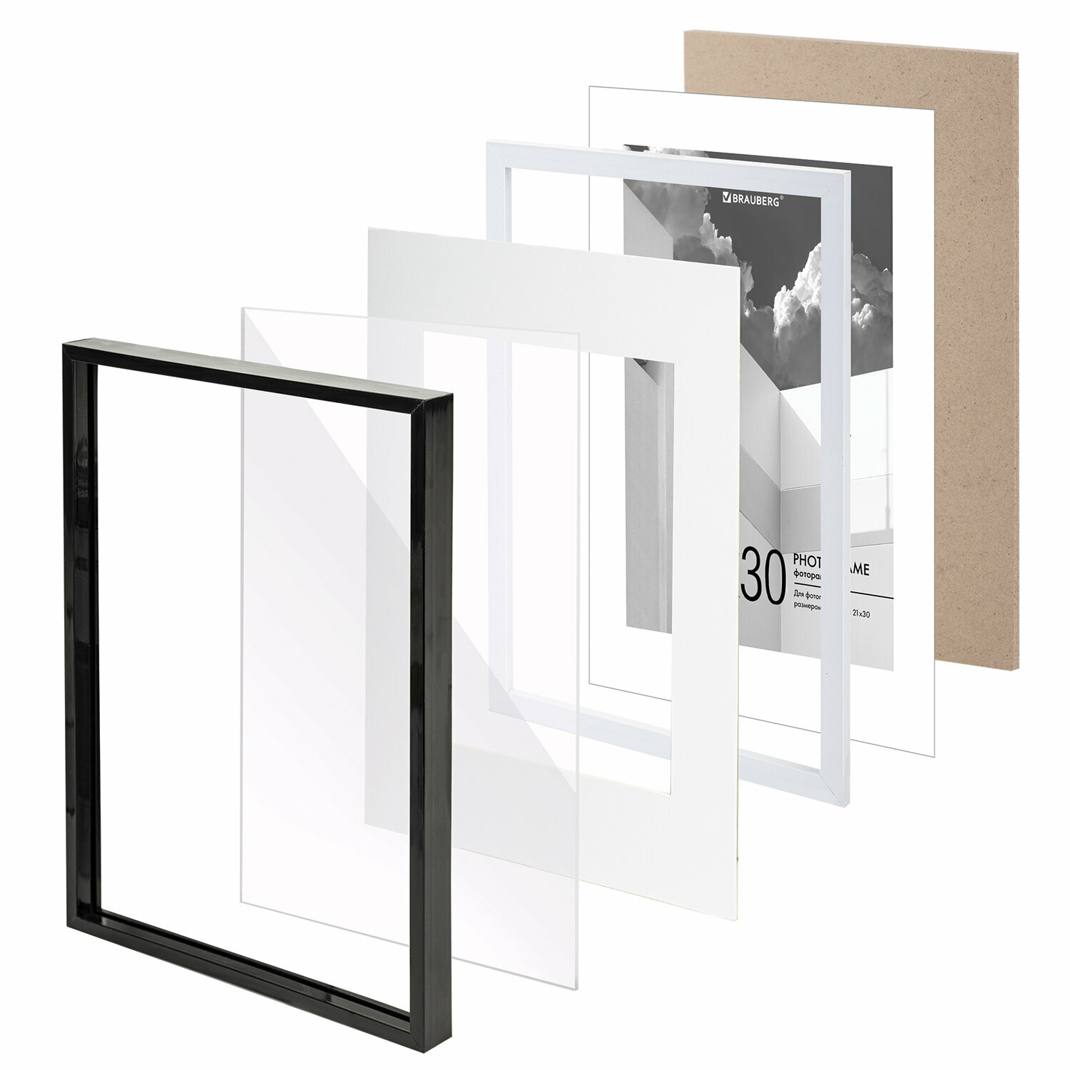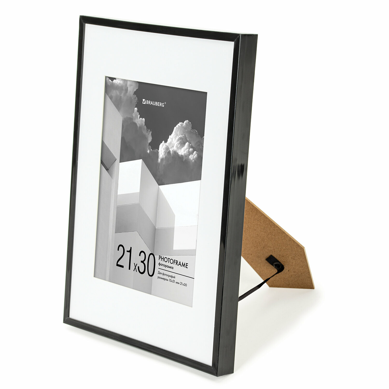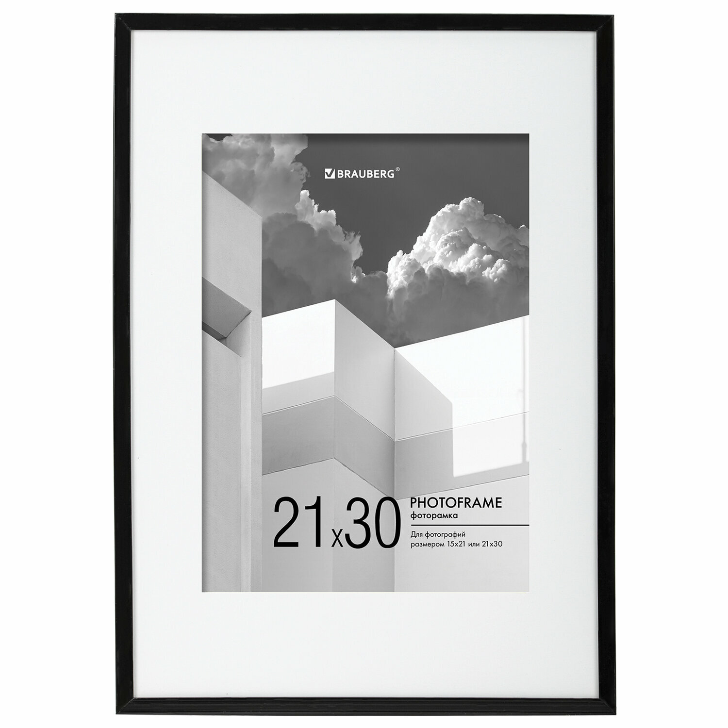 Купить Рамка (фоторамка) для фото, фотографий, картин, грамот на стену А4 21х30 см с паспарту А5 15х21 см небьющаяся, пластик, Brauberg, черная, 391280