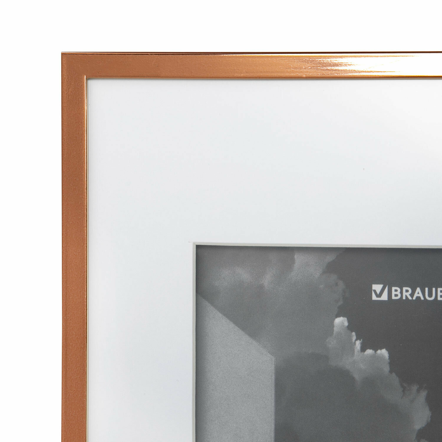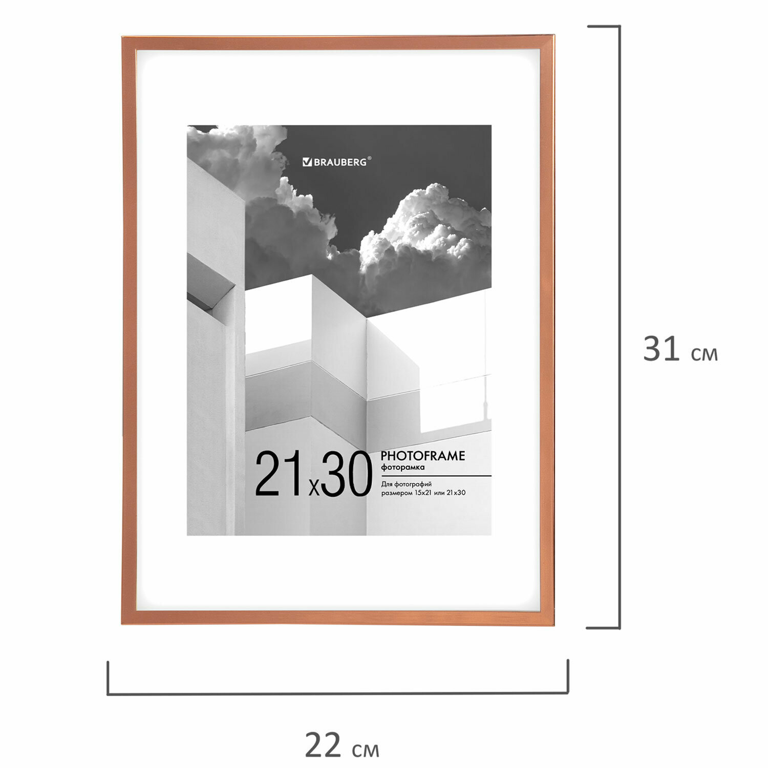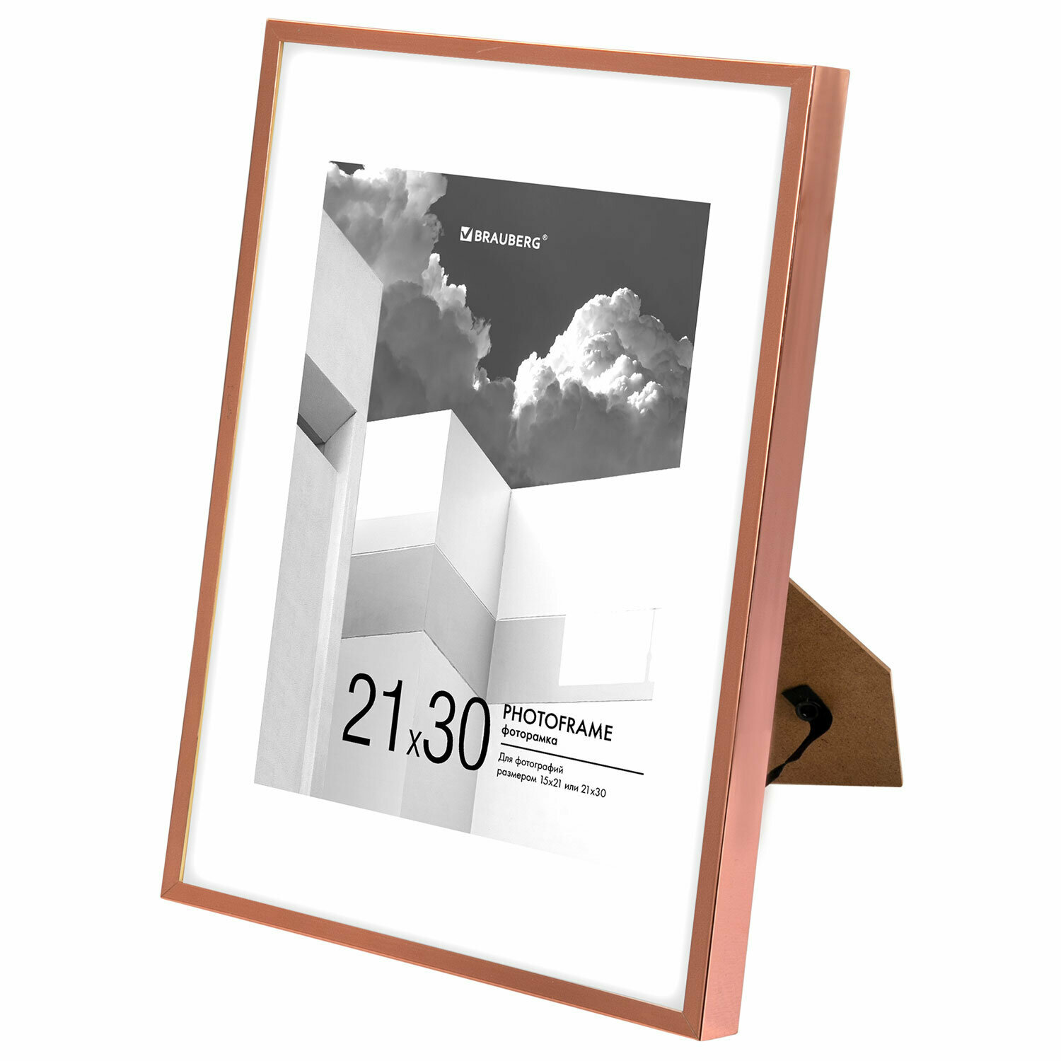 Купить Рамка (фоторамка) для фото, фотографий, картин, грамот на стену А4 21х30, с паспарту А5 15х21, небьющаяся, пластик, Brauberg, золотистая, 391279