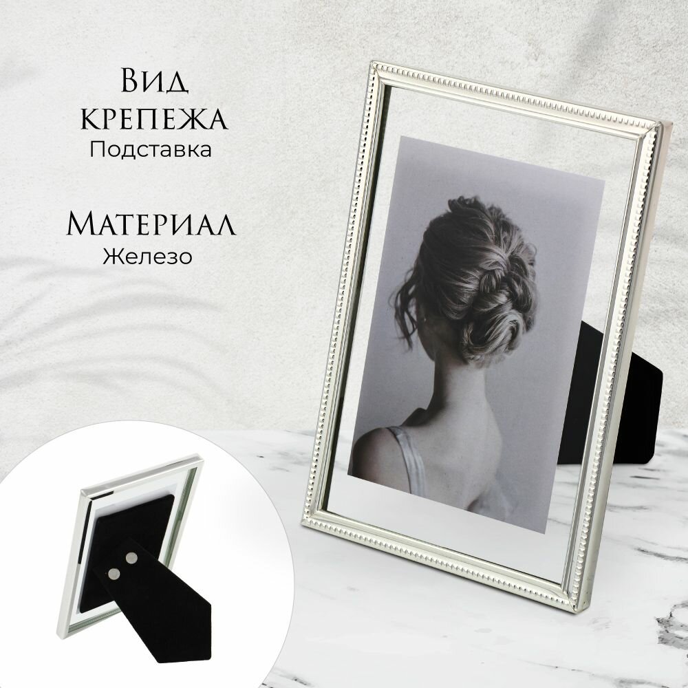 Фоторамка серебряная, 10,9х15,8 см железо, стекло интересное: