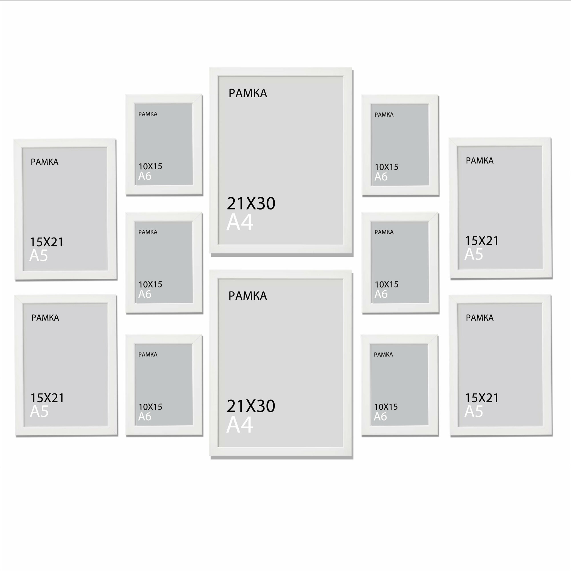 Купить Набор рамок для фото, комплект фоторамок, рамки для фотографий коллаж (21х30, 15х21, 10х15), белые, 12 штук
