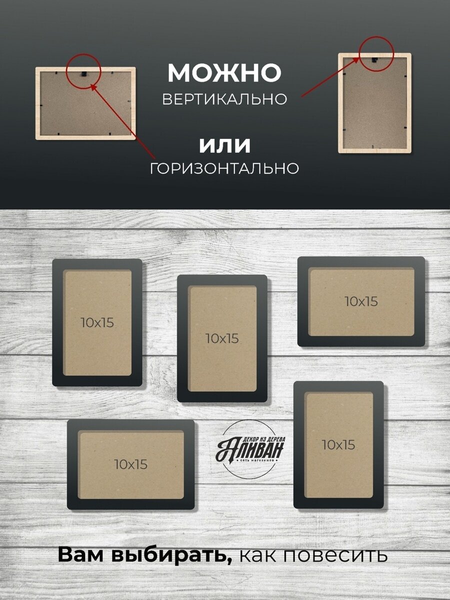 Деревянная рамка для фото 10х15, 1 шт, в натуральном цвете с подставками и настенным креплением