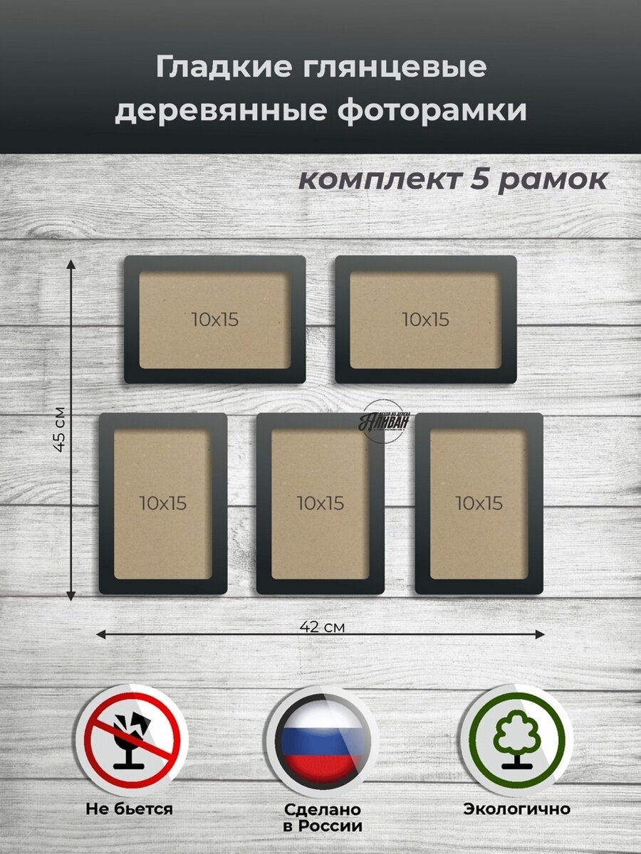 Набор рамок для фото 10х15 5шт. из дерева в черном цвете