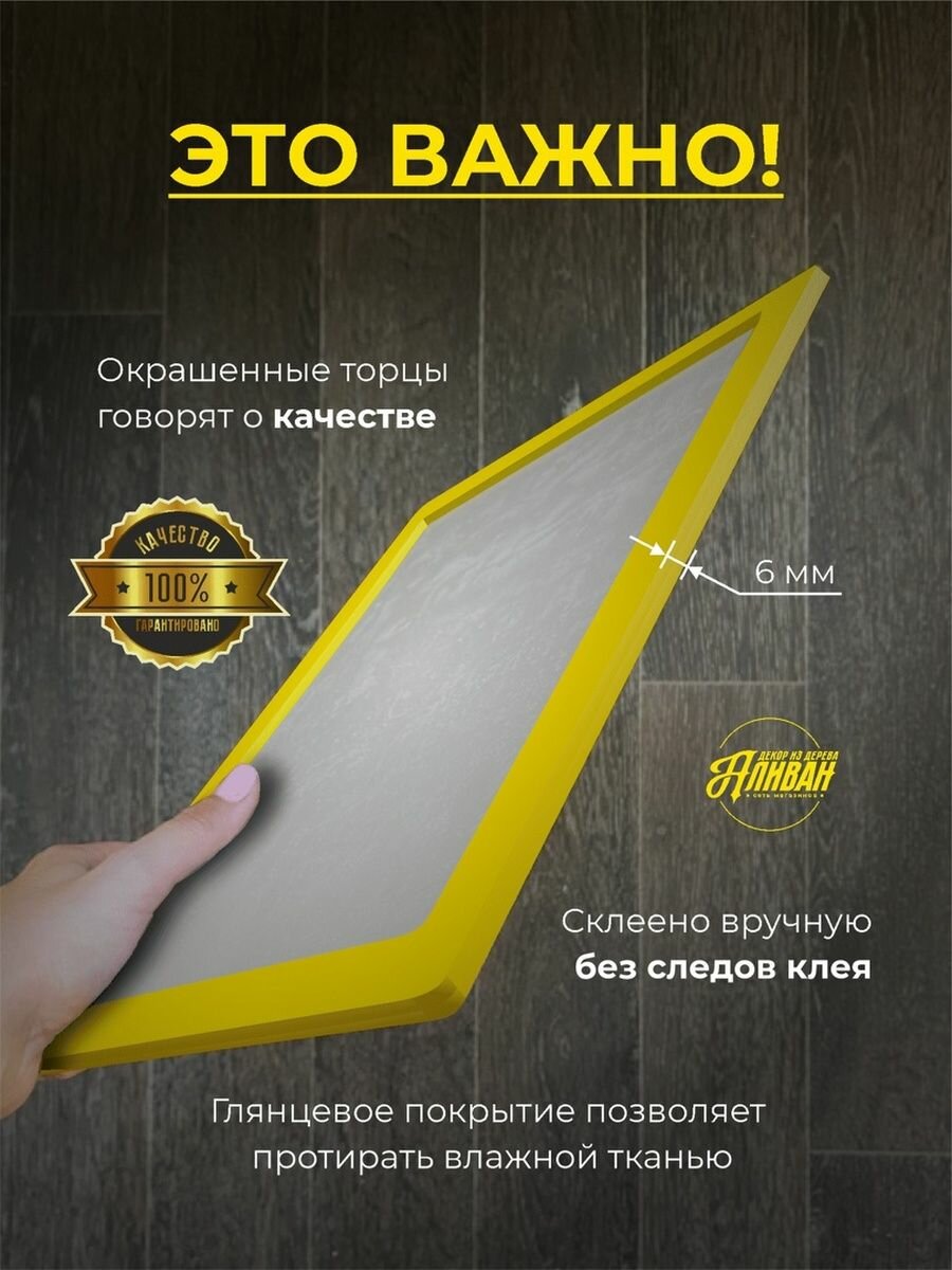 Деревянная рамка для фото 10х15, 1 шт, в желтом цвете, небьющаяся