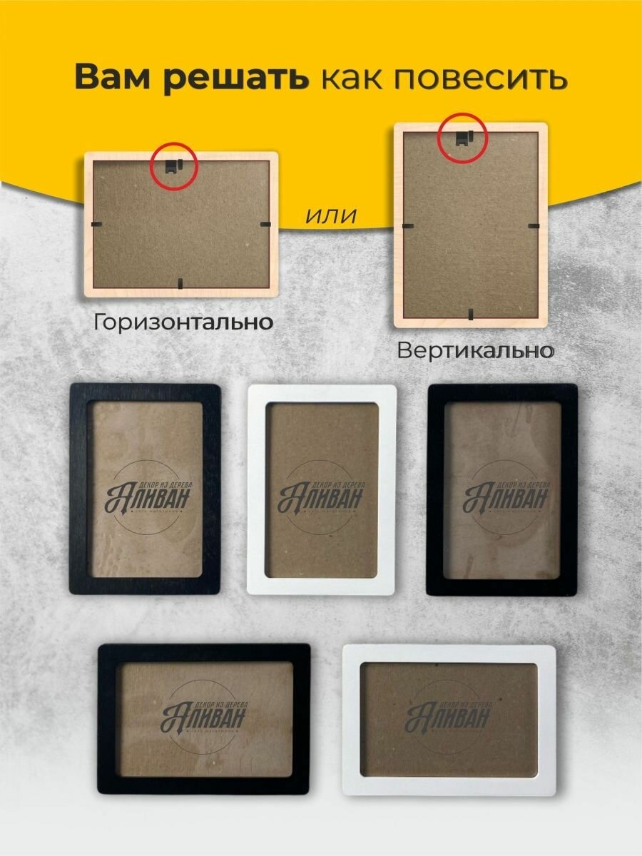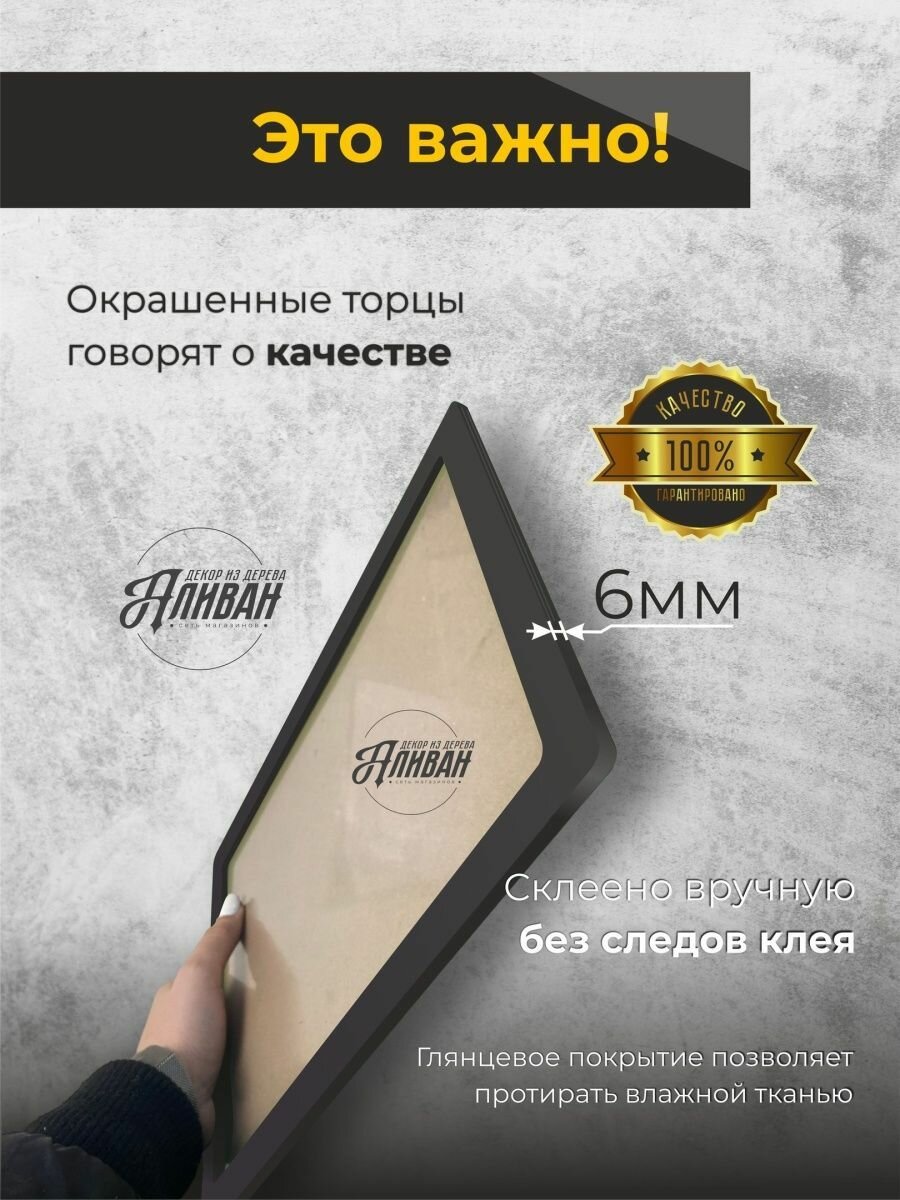 Деревянная рамка для фото 10х15, 1 шт, в черном цвете, небьющаяся