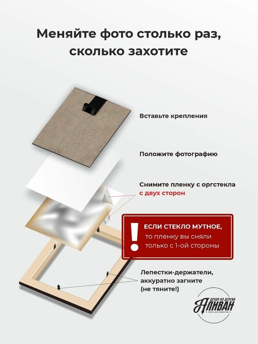 Деревянная рамка для фото 10х15, 1 шт, в натуральном цвете с подставками и настенным креплением