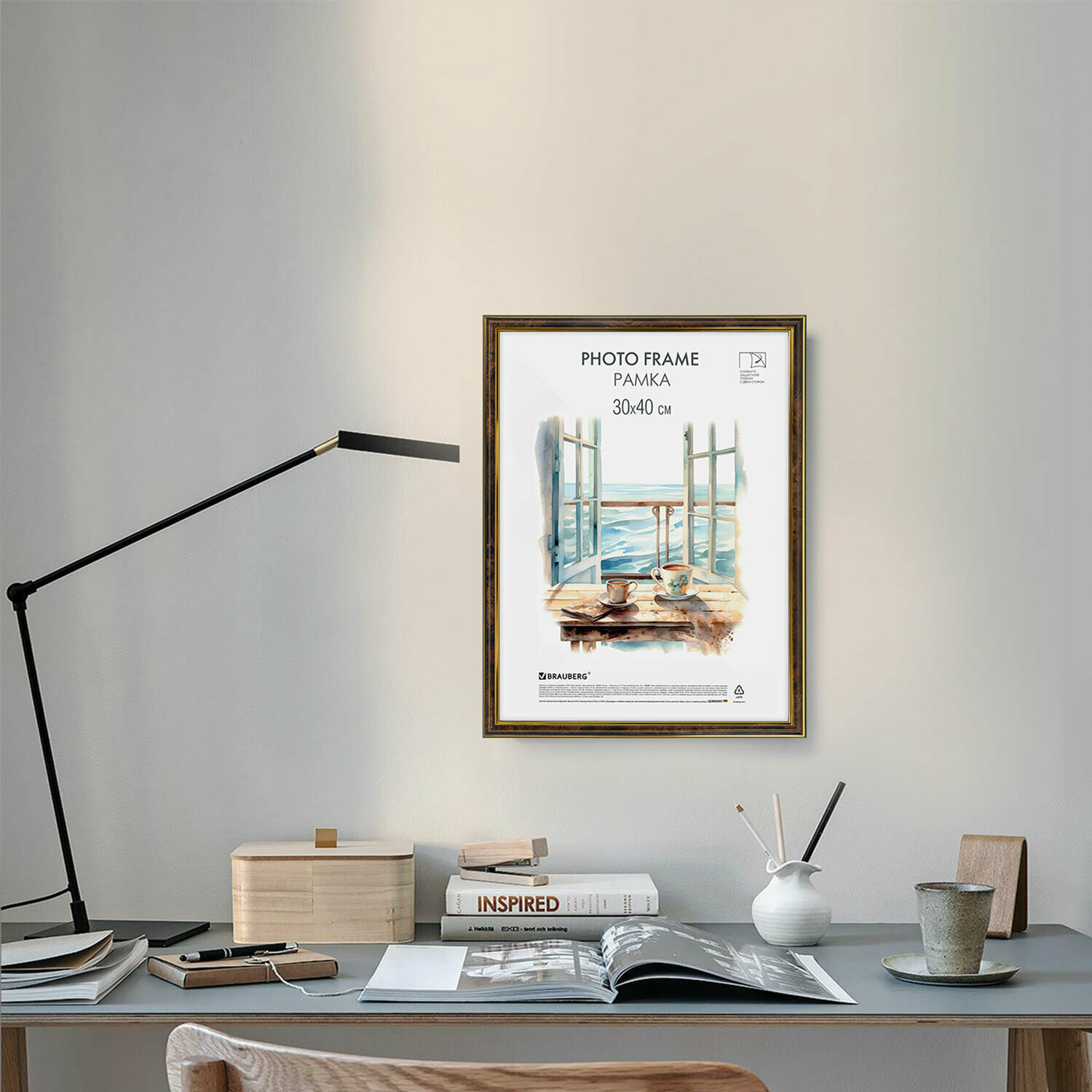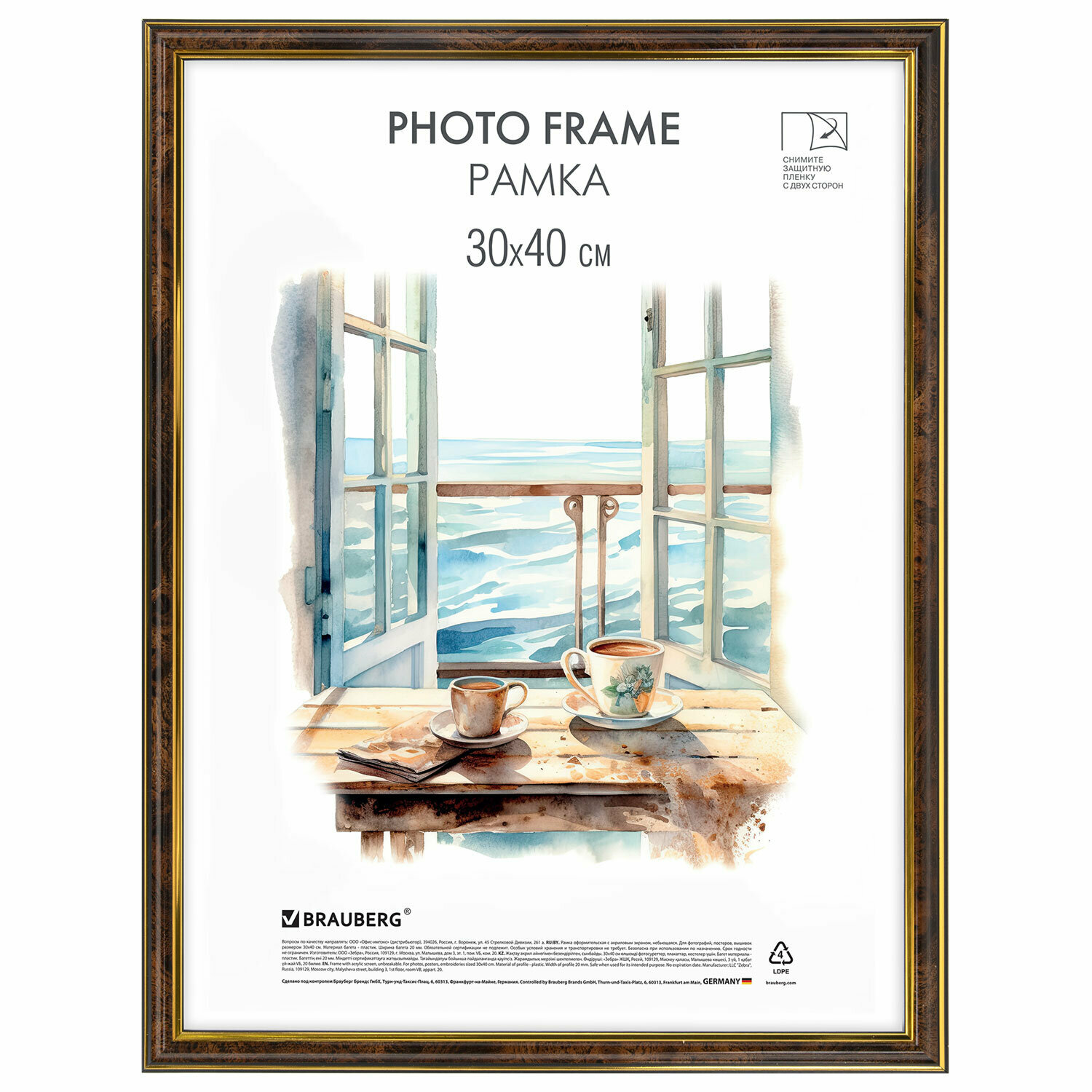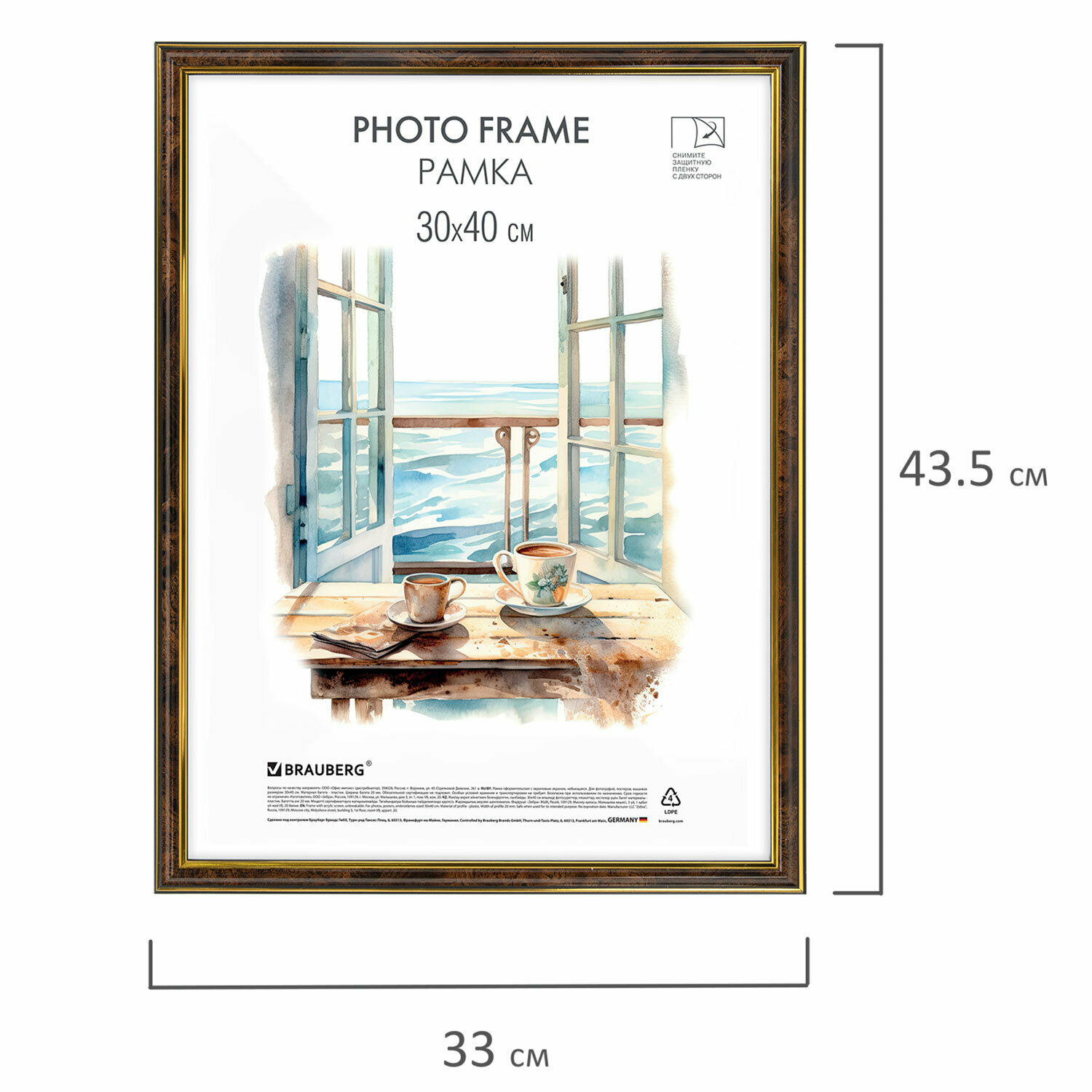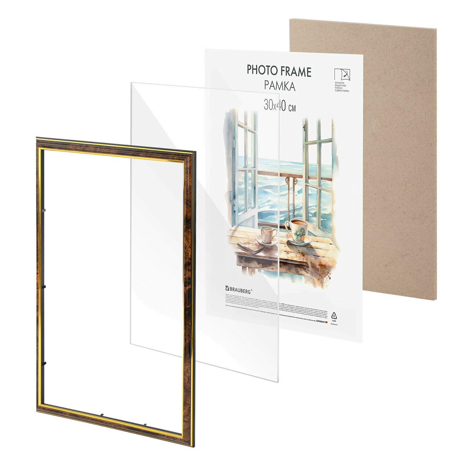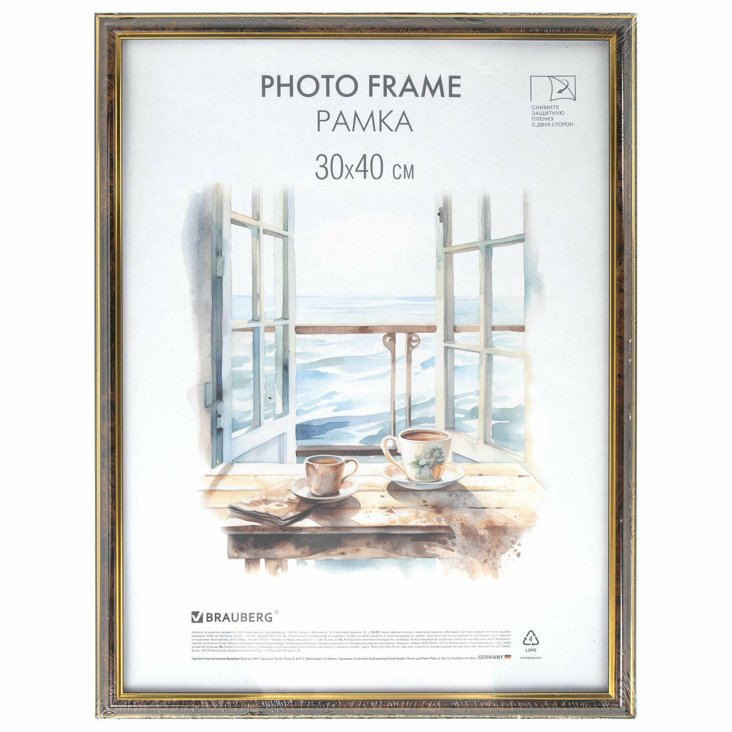 СохранитьРамка для фото, фоторамка 30х40 см для фотографий, картин, грамот, вышивки на стену с небьющимся стеклом, багет 20 мм, темный орех с позолотой, Brauberg Hit, 391384 интересное: