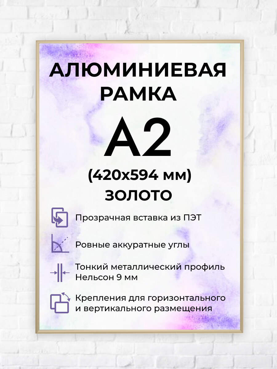 Фоторамка А2 (420х594 мм) Нельсон алюминиевая, цвет золото, для картин, постеров, пазлов, для дома и офиса интересное: