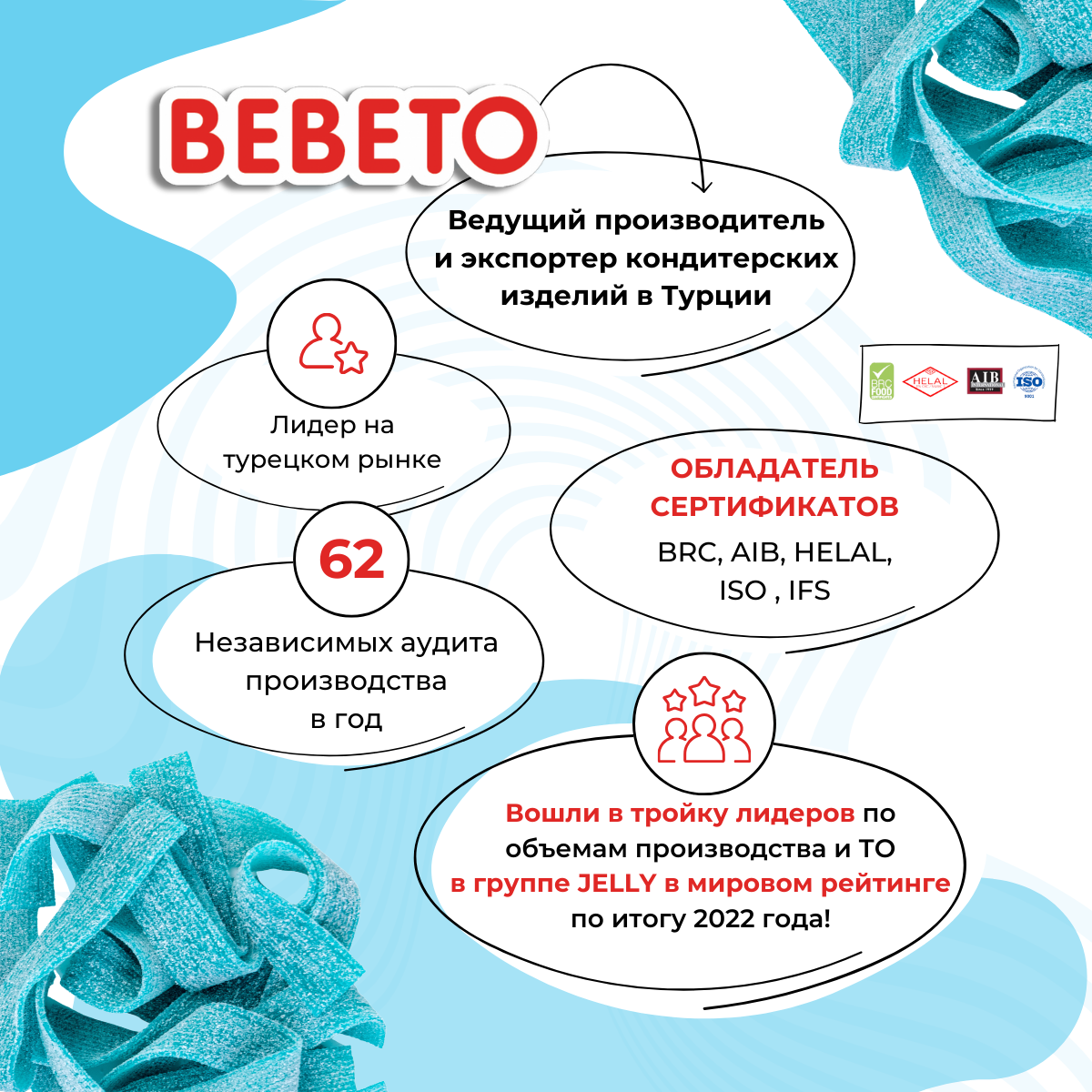 Мармелад жевательный BEBETO "Sour Blast" со вкусом кислой малины, 1,2 кг. интересное:
